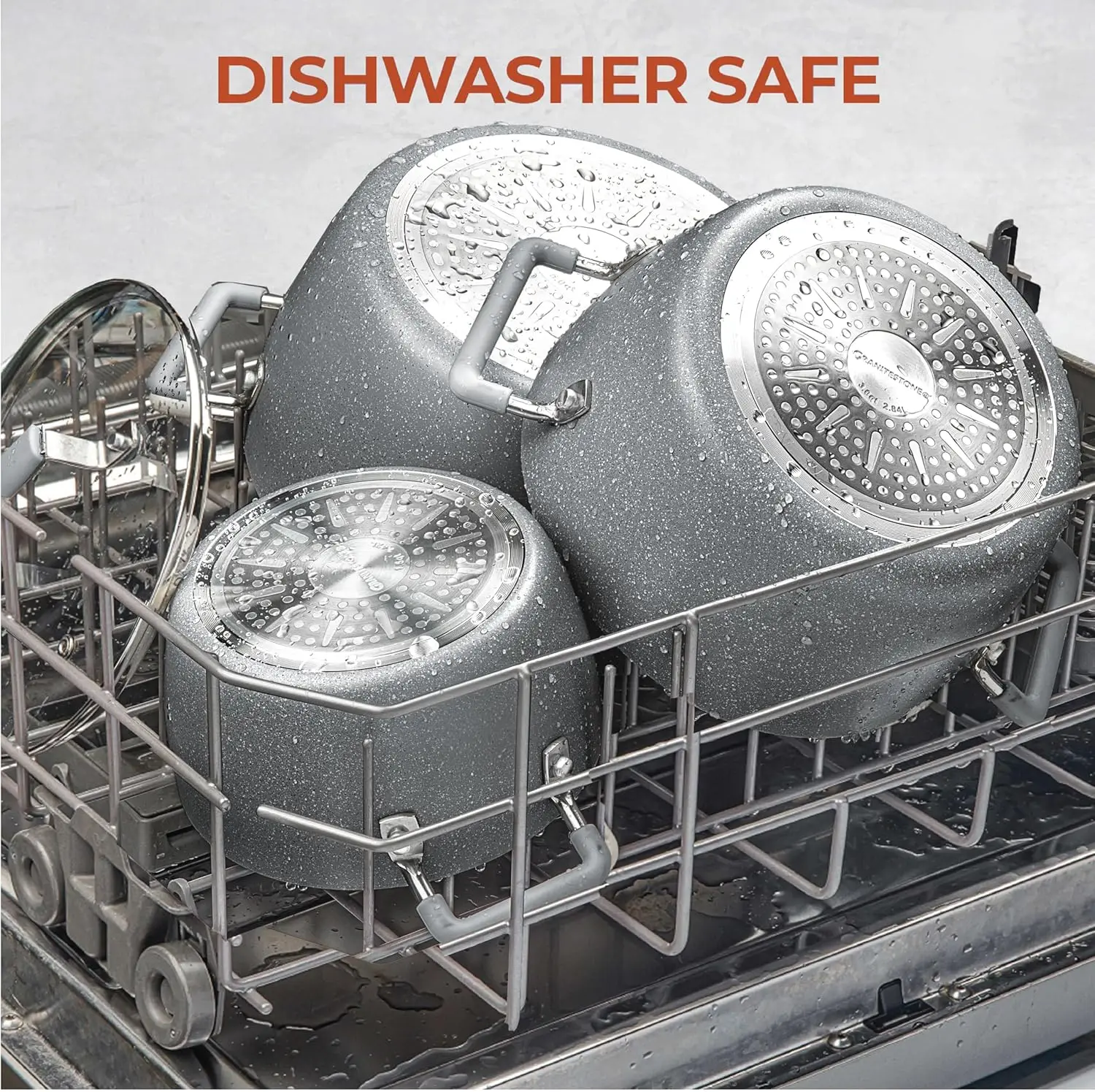 Nonstick Stackable 6-Piece Gray Cooking Pots Set With Lids, Dishwasher Safe