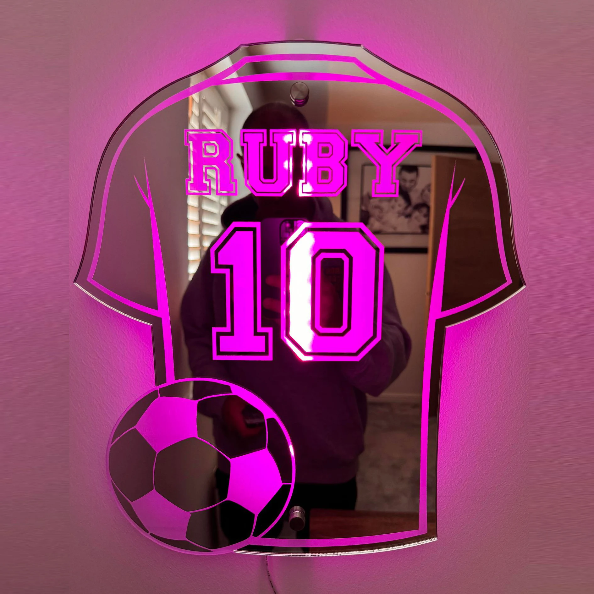 Personalized LED Acrylic Mirror with Football Shirt Design, 35cm x 30cm