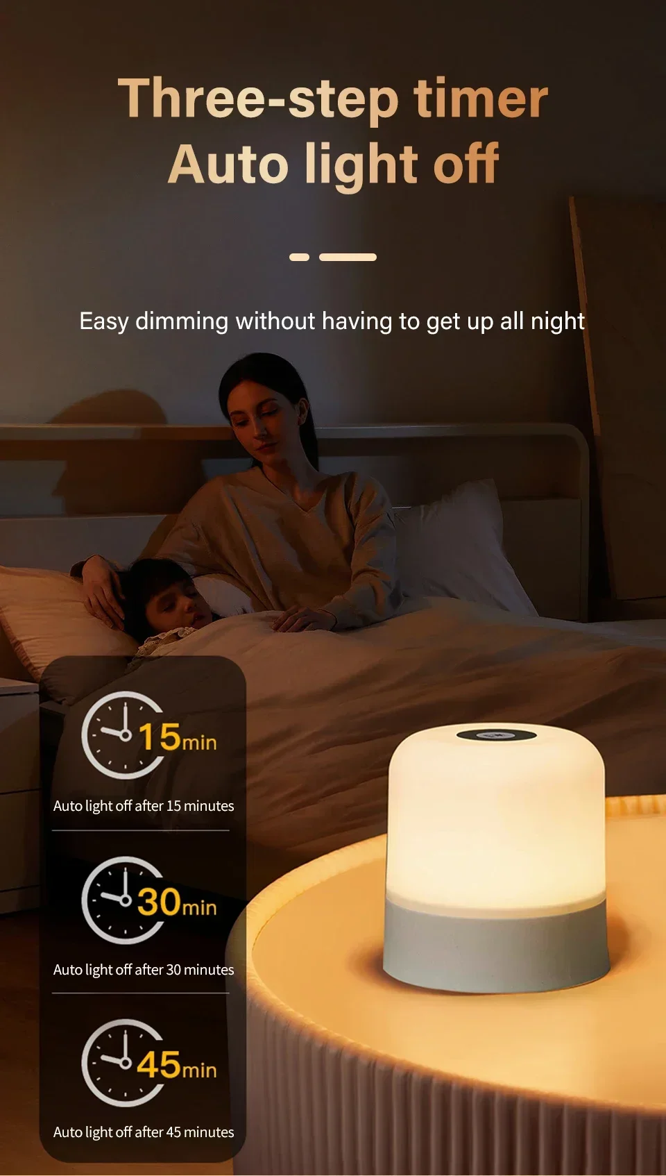 Rechargeable LED Night Light with Remote Control, Touch Switch, Dimmable RGB White