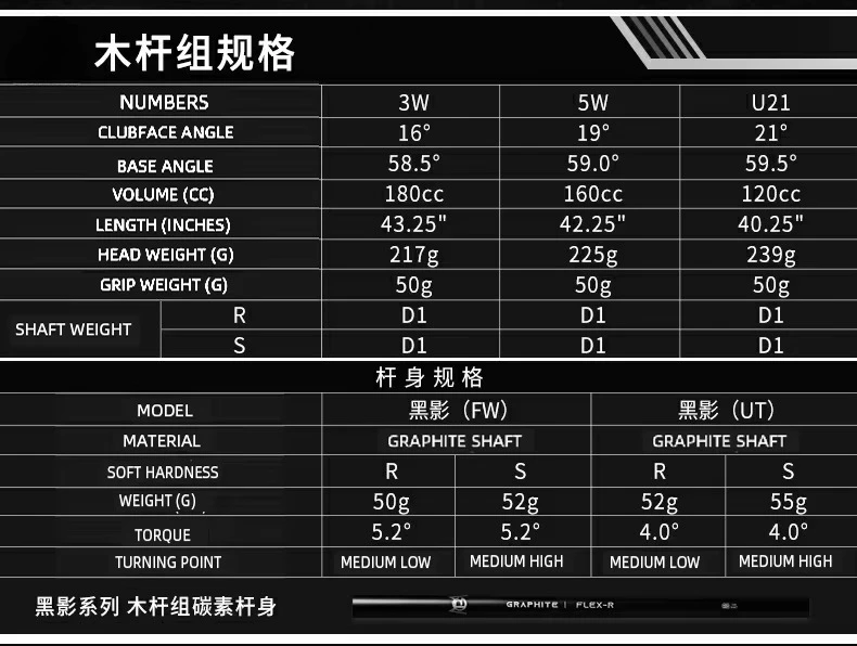 1.BLACK GOLF CLUBS High bounce hitting surface,low centre of gravity ultra lite graphite shaft 2.HIGH COR/HIGH BOUNCE Beautiful,simple,and comparable to traditional brands,it's been rebuilt to be as fast,long,and complete as possible 3.2041 UNEVENLY THICK STRIKING SURFACE Ultra-high rebound design,the rebound coefficient reaches,over 0.85 making the golfer's hitting distance improve by about 5-10 yards 4.STAINLESS STEEL CASTING STRUCTURE The body of 17-4 stainless steel casting,welded sole plate structure,the new cup-shaped head shape body design is more suitable for the smoothness of the swing,effectively improve the fault tolerance,more conducive to hitting 5.17-4 THICK AND THIN HITTING SURFACES High-strength stainless steel 17-4 thick and thin striking surfaces are designed for better bounce,Even when off-centre,the ball generates high ball speeds when hit,resulting in increased distance. 6.LOW CENTRE OF GRAVITY GOLF IRON The shole 431 stainless steel casting,the striking surface becomes thinner,increasing the energy of the movement of the ball when hitting the ball to achieve the improvement of ball speed 7.431 STAINLESS STEEL CASTING Provides better feel without losing distance the concave back design not only improves inertia and forgiveness but also increases distance 8.HIGH RESILIENCE HITTING SURFACE CNC two-way milling pattern increases the backspin and the thinning of the striking surface increases the motion energy transmitted to the ball when hitting and achieves an increase in ball speed 9.CNC BI-DIRECTIONAL MILLING PATTERN Whole 431 precision casting+two-way CNC milling pattern on the batting surface pushes the ball to roll forward better when hitting the ball 10.ASSISTED AIMING LINE DESIGN The classic small semi-circular shape of this putter makes it easy to putt with a firm seating ponit.Ensures that the line of the putt is not deflected and that the hole is easily targeted on the green 11.40T GRAPHITE SHAFT/950 STEEL SHAFT WOOD uses ultra light carbon shafts,while IRON offers carbon and 950 steel shafts 12.COMFORTABLE NON-SLIP GRIP wood/iron uses the new zero-added rubber grips for a more comfortable feel and ultra-light PU grips for the putter