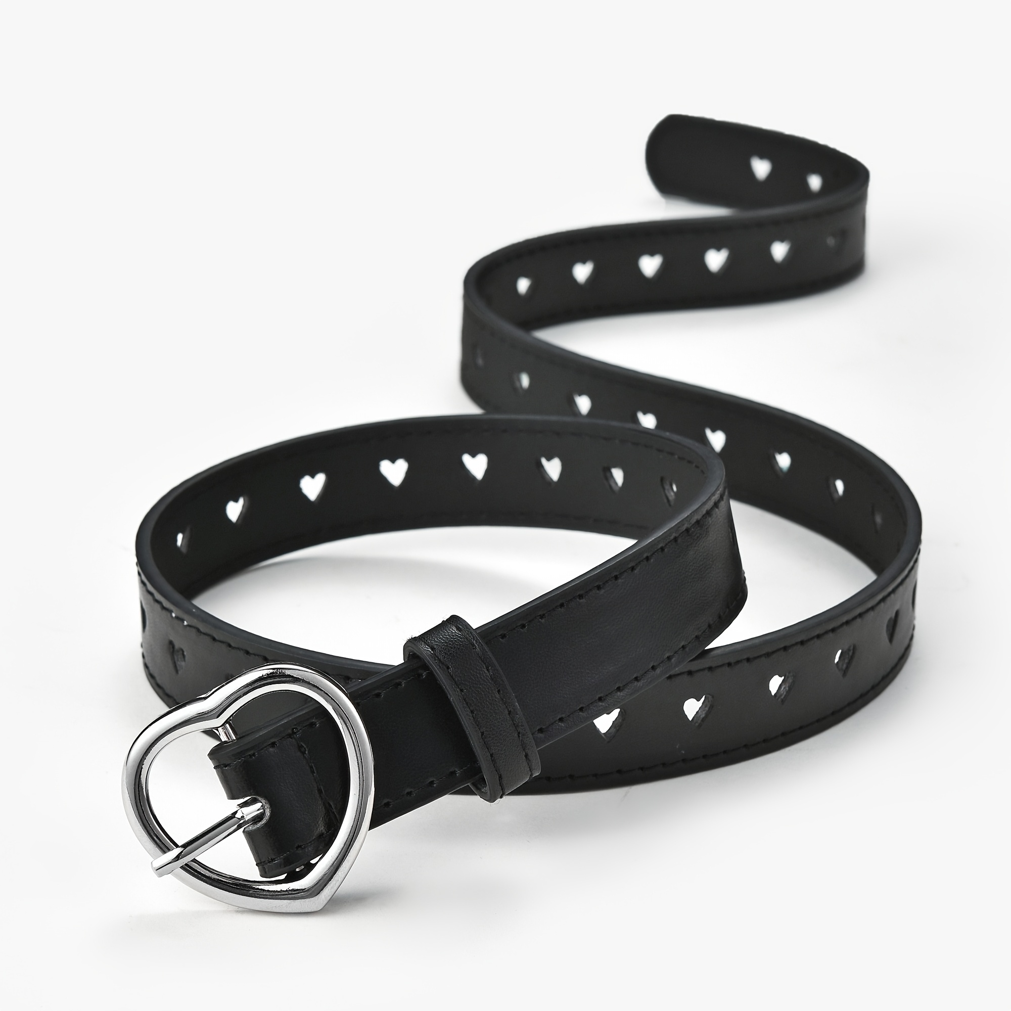 Single Pack Women's PU Belt with Heart-Shaped Hollow Buckle