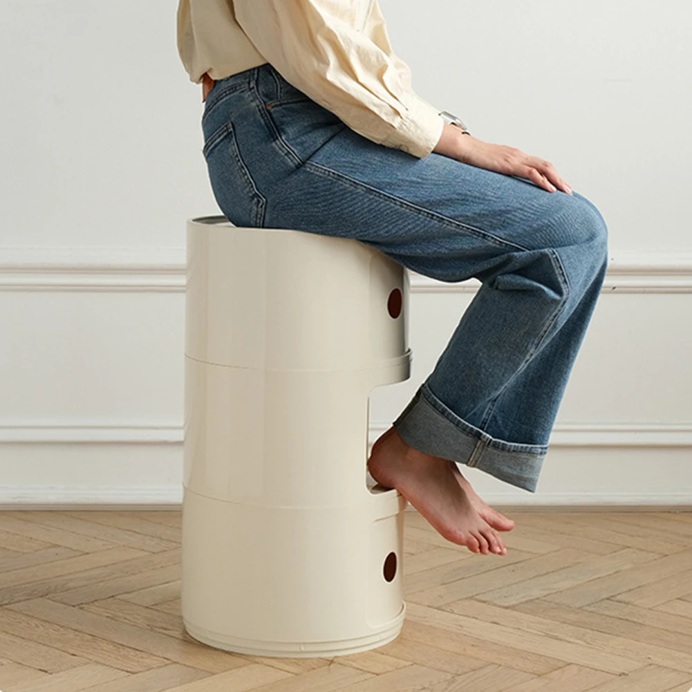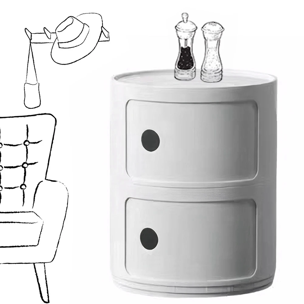 Small Round 3-Drawer Plastic Bedside Table, 40 cm Height