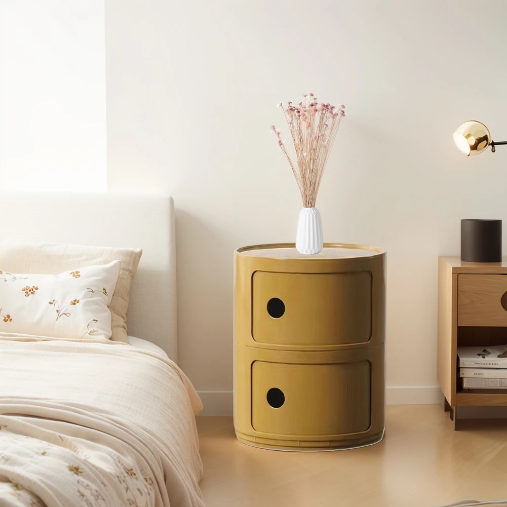 2/3 Layer Nordic Round Bedside Table Bedroom Small Side End Table Nightstand Storage Locker for Living Room Bedroom