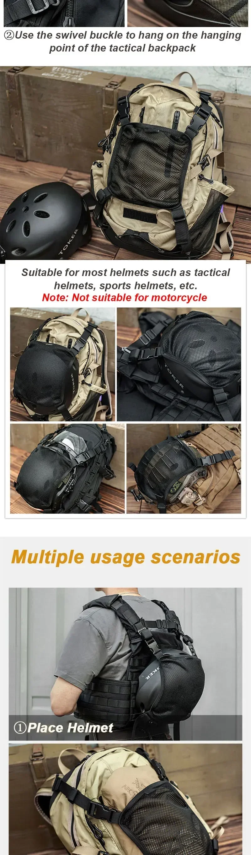3.Suitable for most helmets such as tactical helmets, sports helmets, etc.(Not suitable for motorcycle full-face helmets)