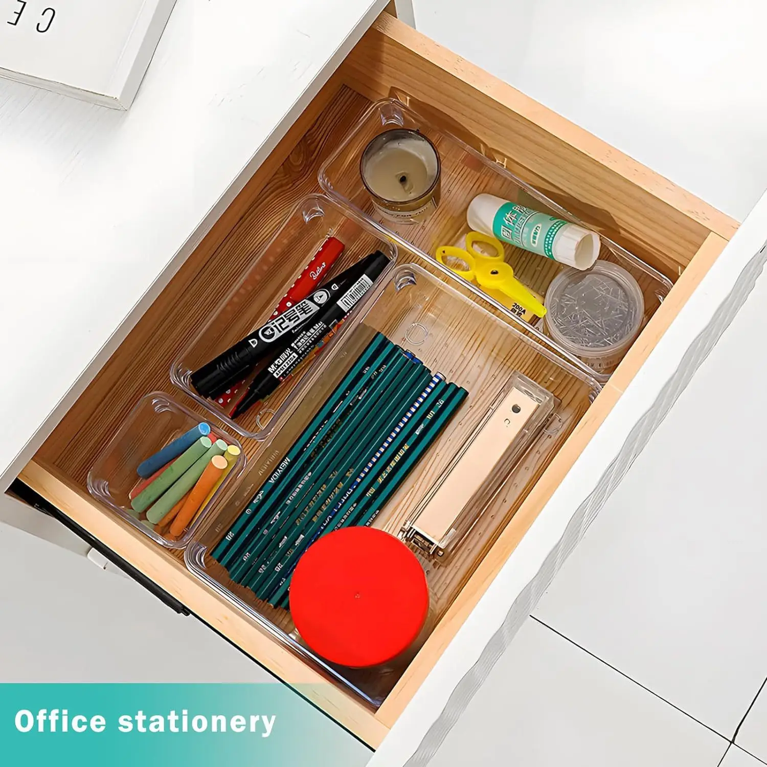 Say goodbye to drawer chaos! Our stackable drawer storage boxes can maximize your storage space, allowing you to efficiently organize your essentials. Store your cosmetics, jewelry, nail polish, accessories, tableware and office supplies neatly.