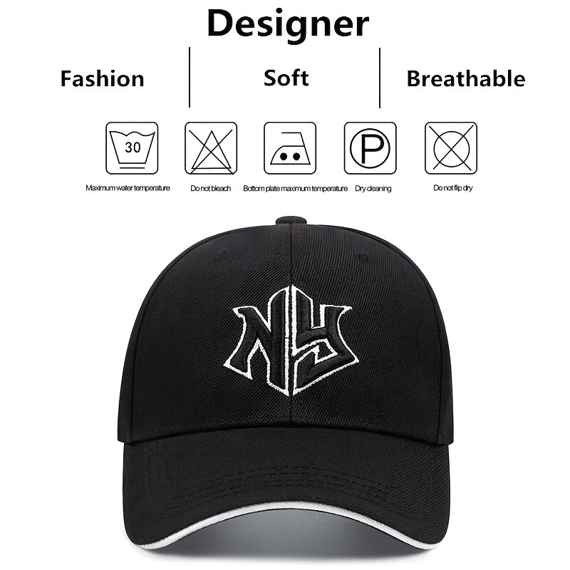 Unisex Adjustable Buckle Woven Fabric Baseball Cap with Embroidered Design, 1 Piece