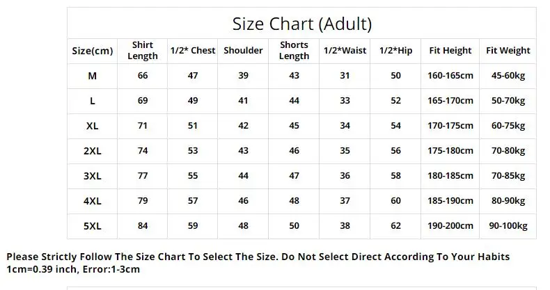 size 5XL:suitable for height 190-200cm,weight 95-100kg;