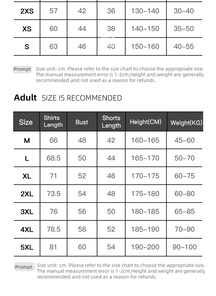 Kids size 2XS:suitable for kids height 125-135cm, weight 25-35kg;