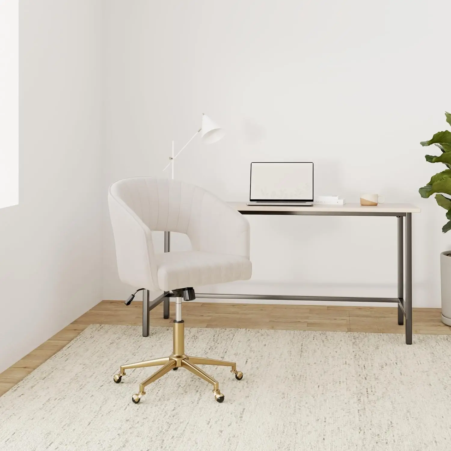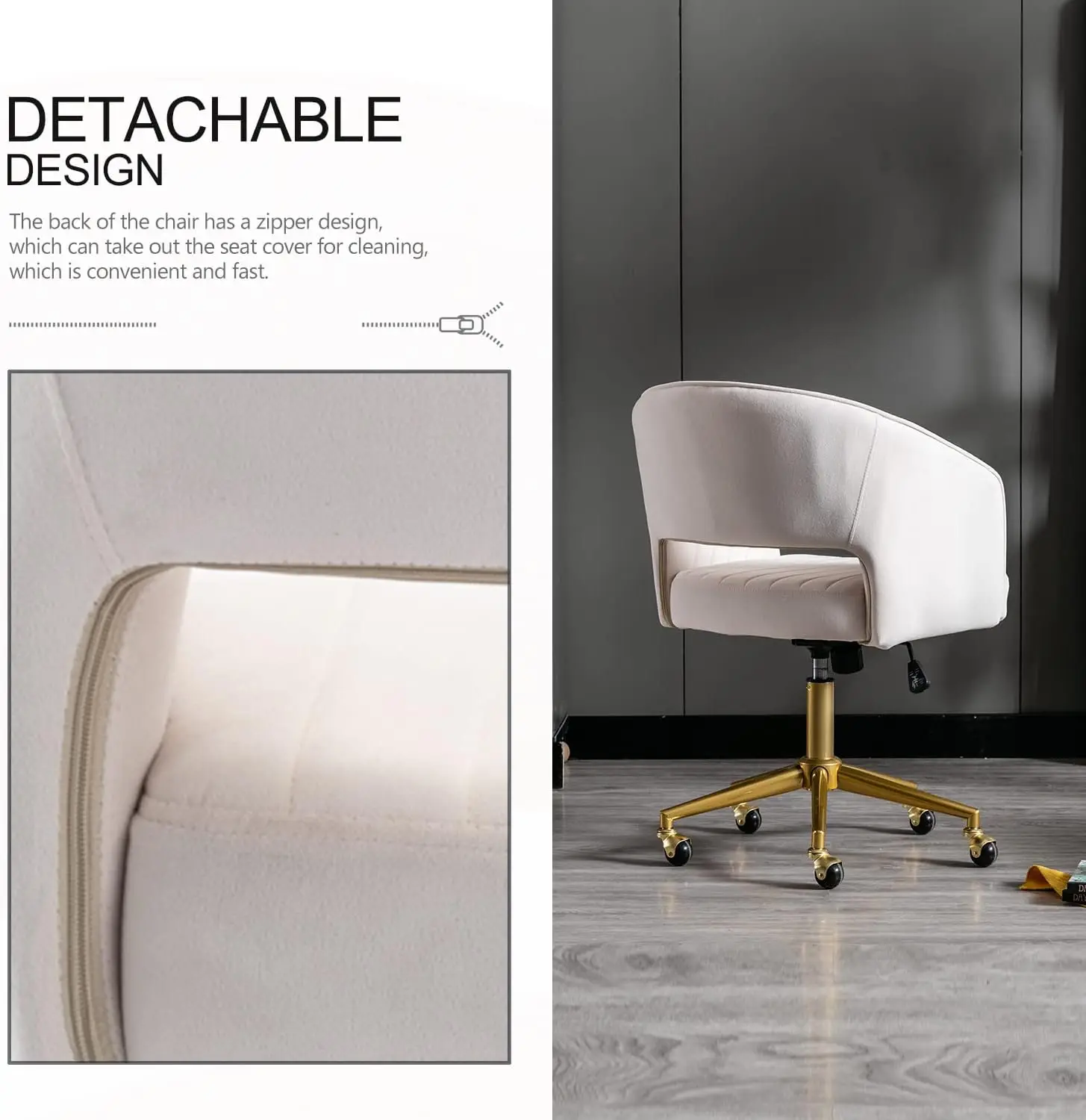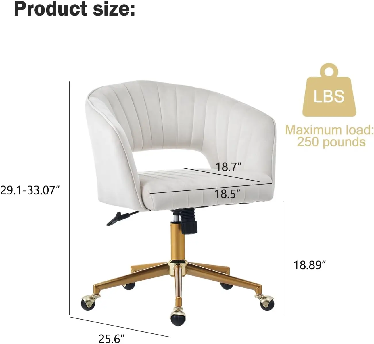 Upholstered Velvet Office Desk Chair with Adjustable Swivel Wheels and Ergonomic Design in Beige