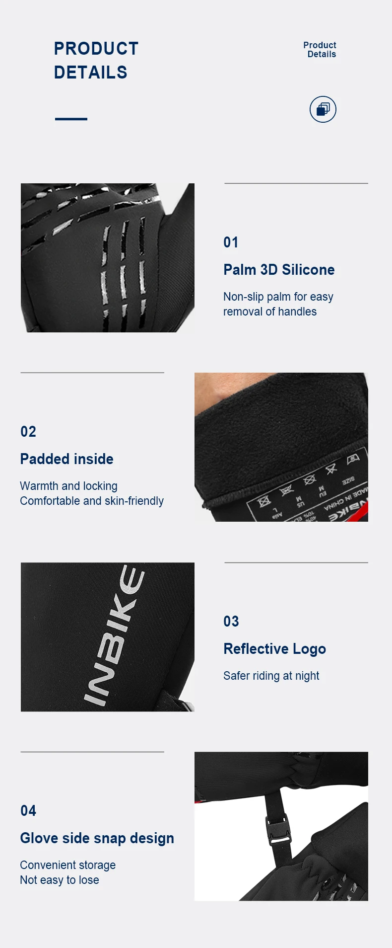 This INBIKE Winter gloves is made of stretch triple-layer composite windproof & waterproof fabric to keep your hands warmth and dryness.