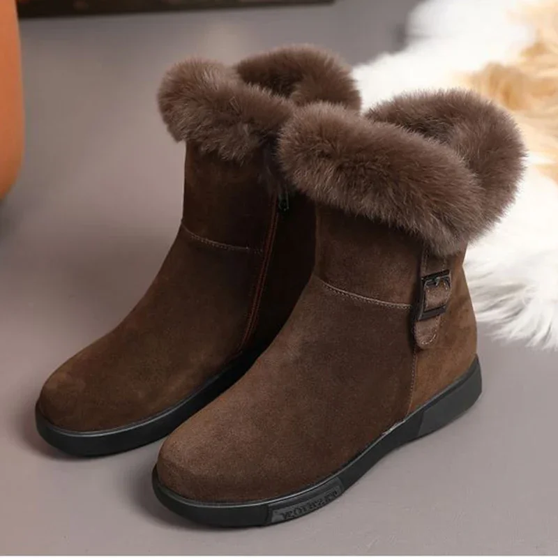 Women's Ankle Boots with Flat Heel and Plush Lining