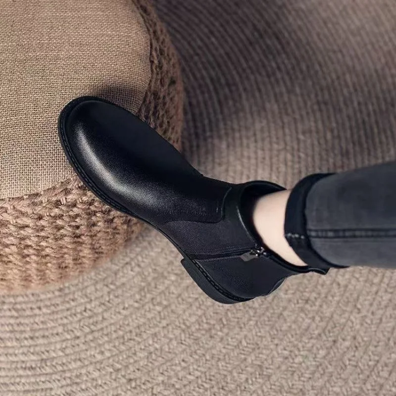 Women's Autumn and Winter Flat Heel Ankle Boots with Side Zipper