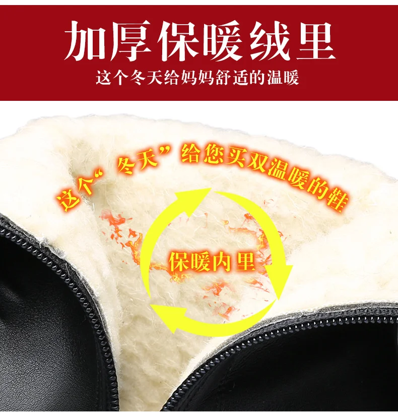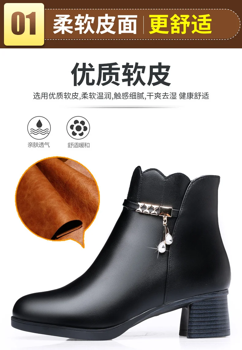 Women's Autumn Winter Soft Leather Warm Plush Ankle Boots Anti-Slip Thick Heel