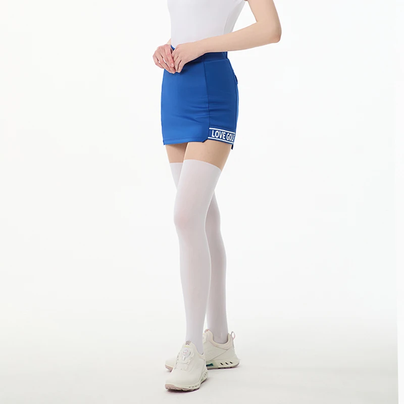 Women's Blue Nylon Elastane Golf Skort with Safety Shorts, Stretch Waist