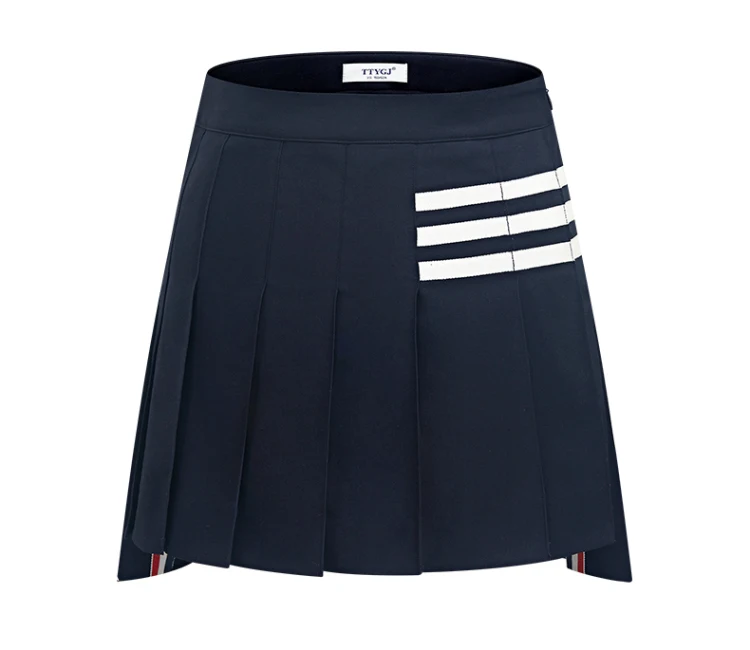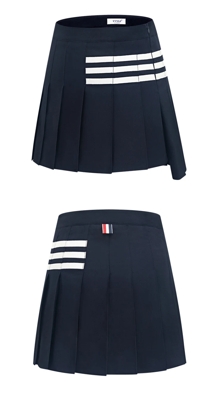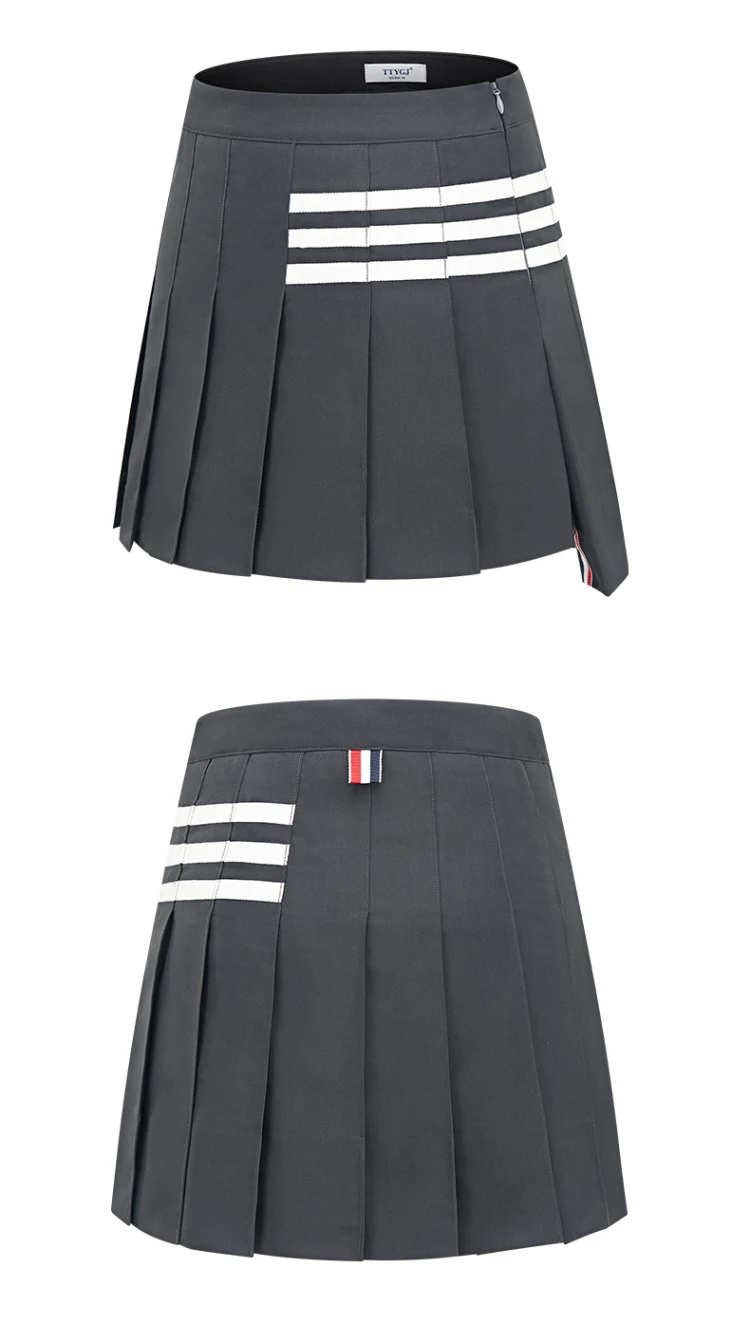 TTYGJ Female Slim Split Golf Short Skirt Women High-waist Pleated Culottes Ladies Stripe Patchwork Skirts Sport Training Skort