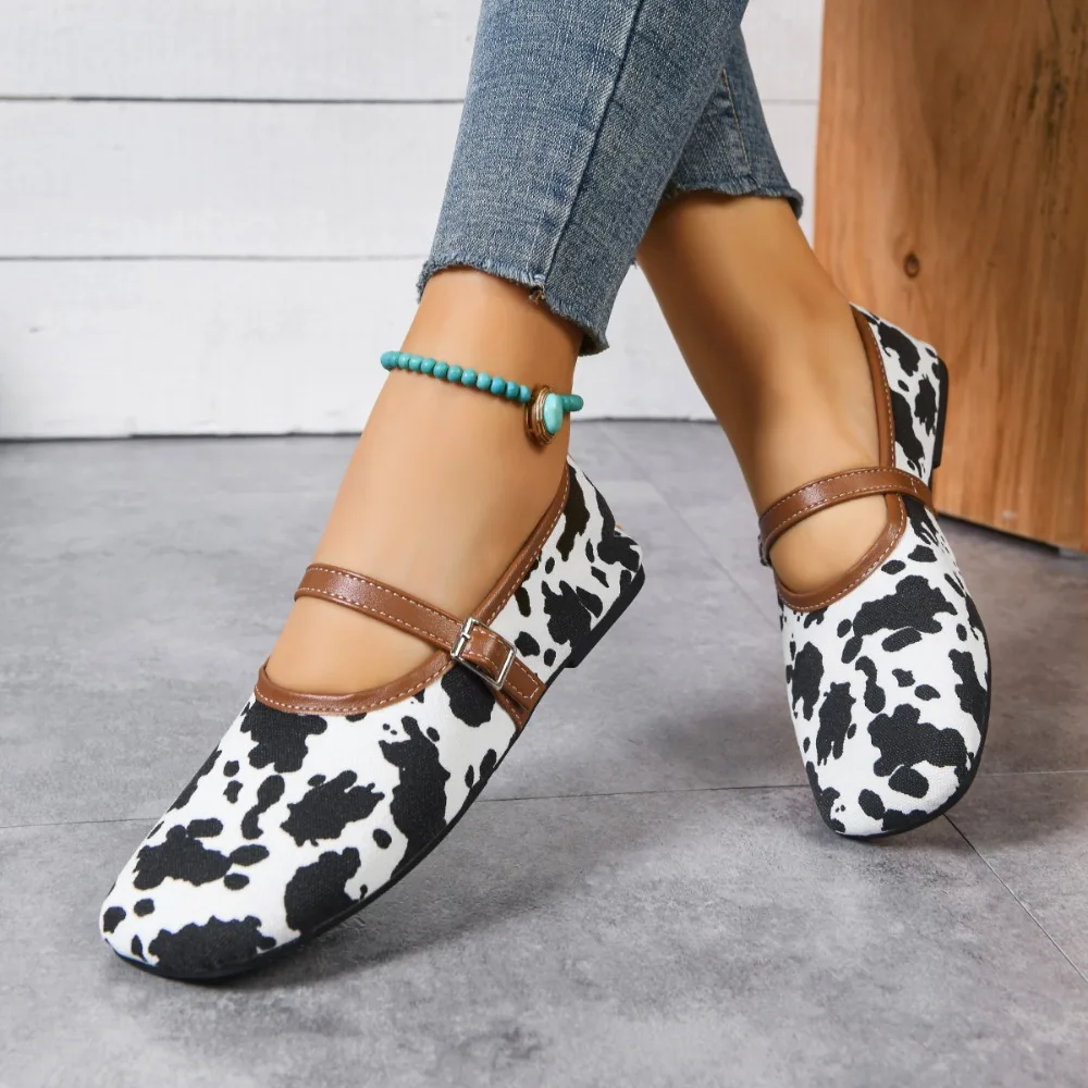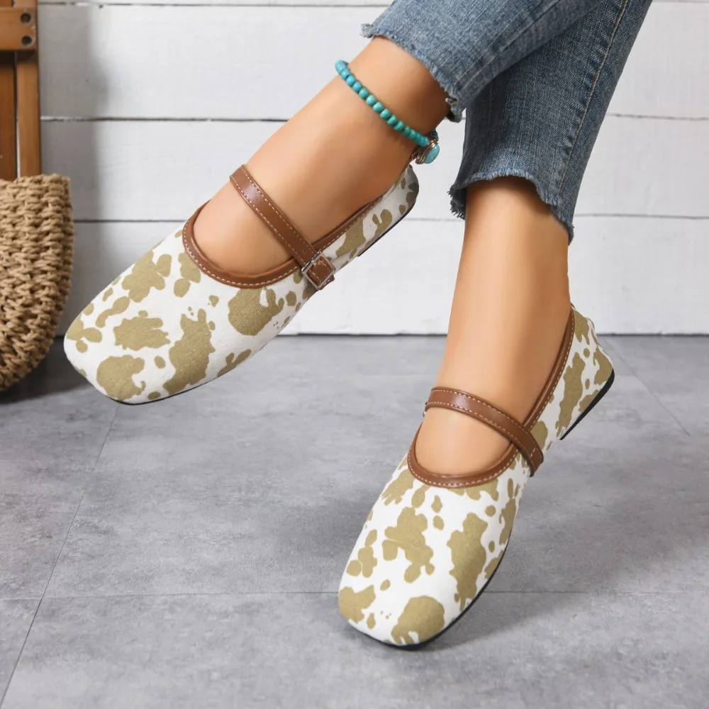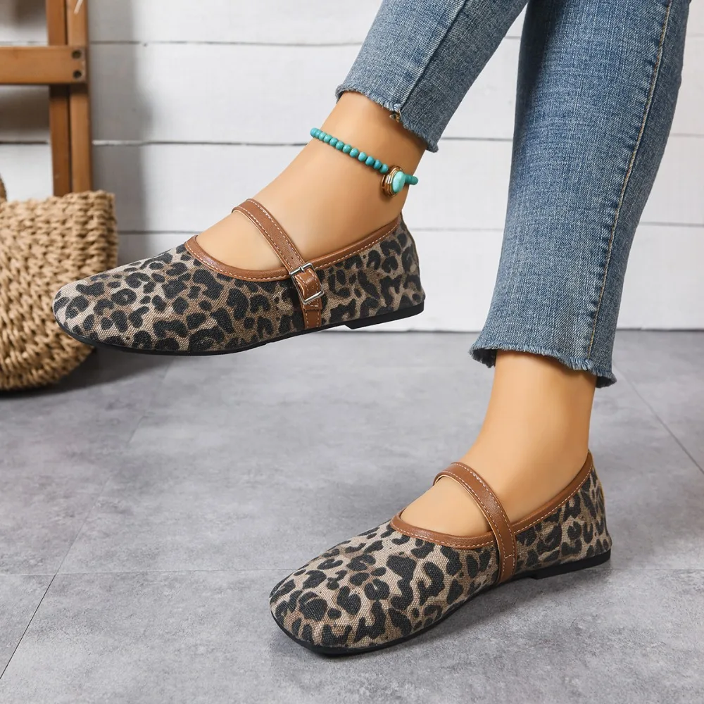 Women's Leopard Print Flat Loafers With Buckle Strap
