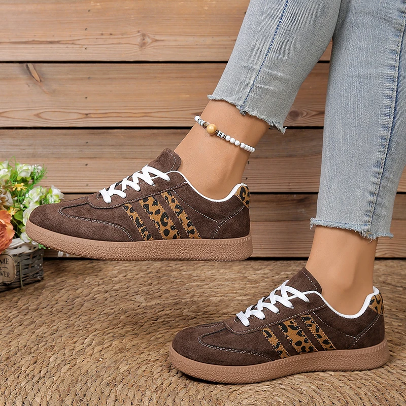 Women's Leopard Print Lace-Up Breathable Low Heel Sneakers