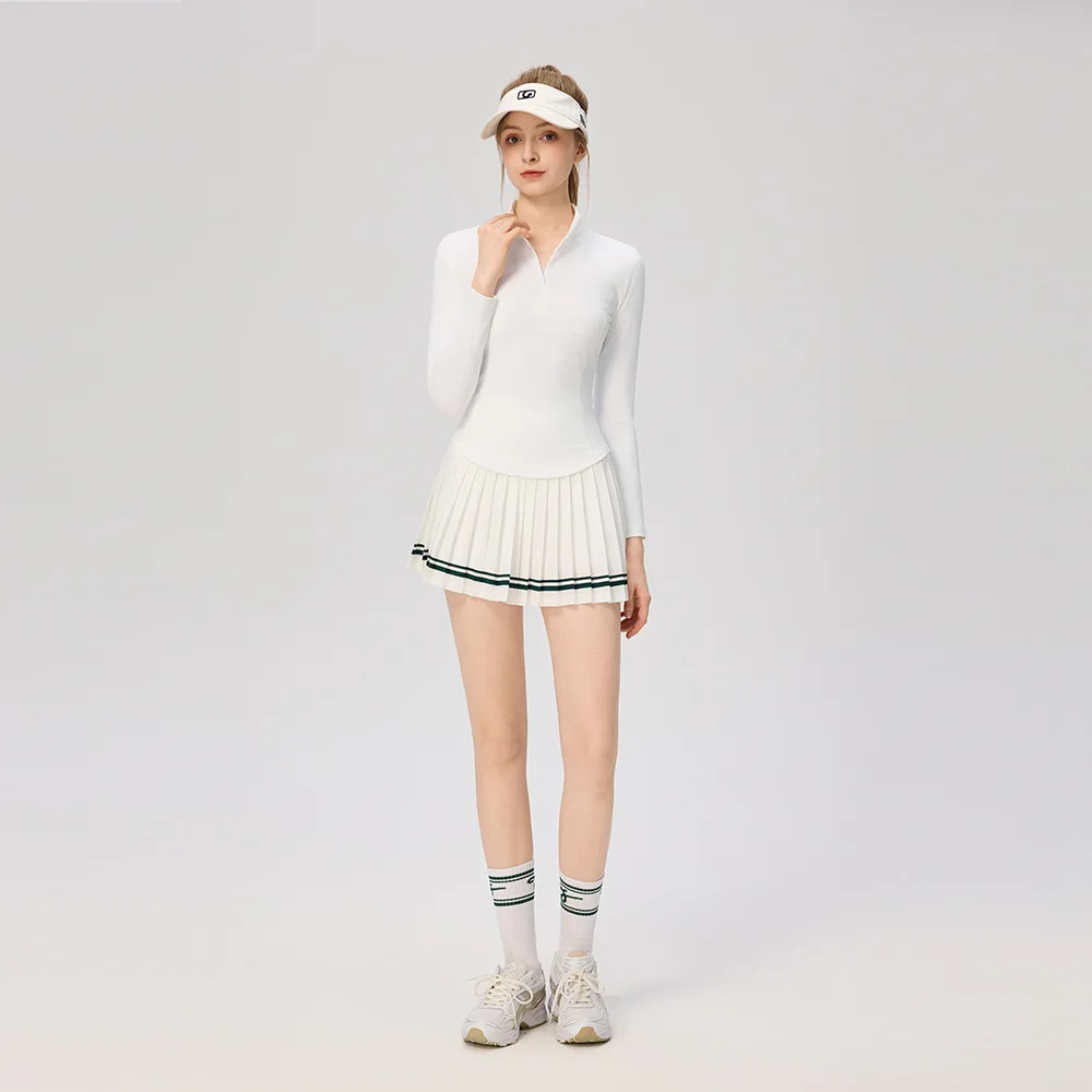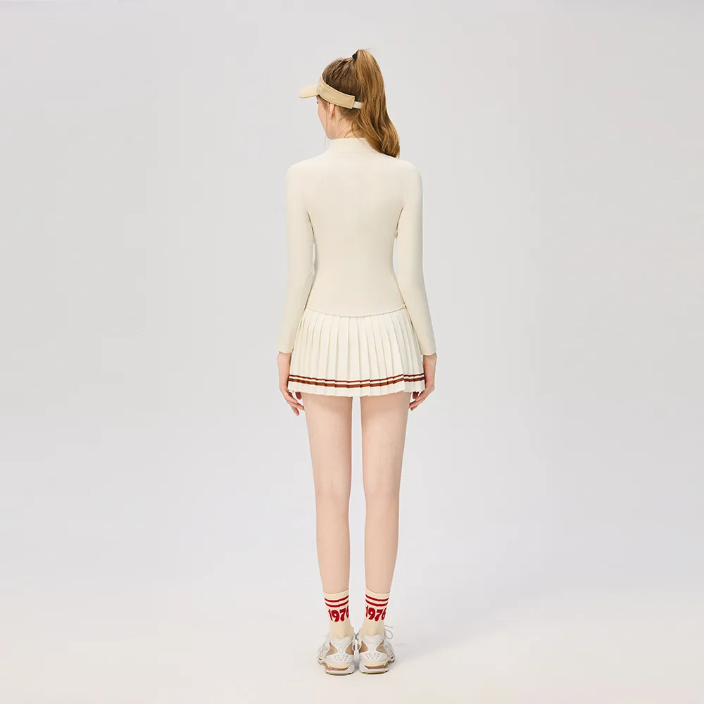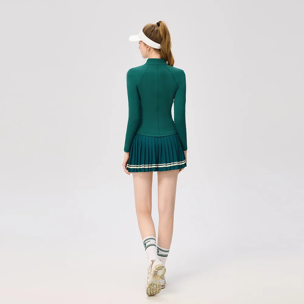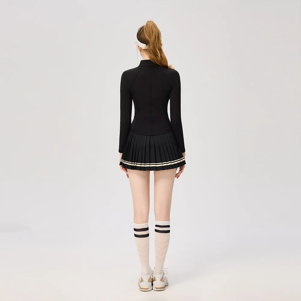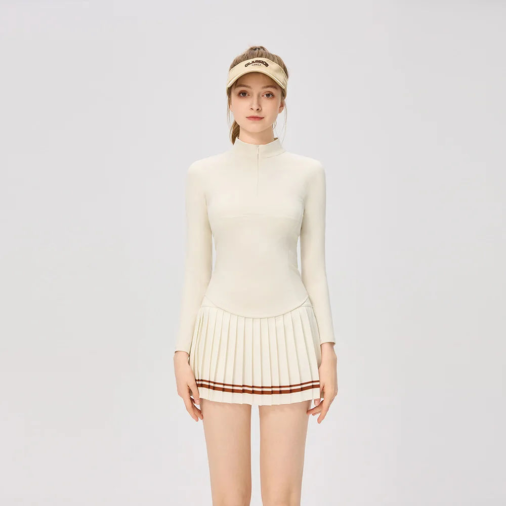 Feature: Zipper Polo Collar, Breathable, Long Sleeve, Slim, Bodycon,Soft, Pleated, A-lined, High Waist, with short, vintage