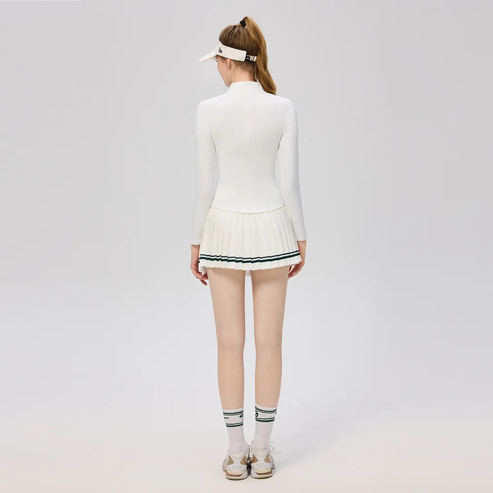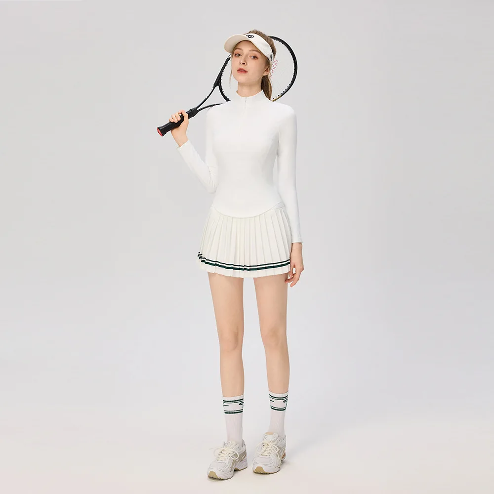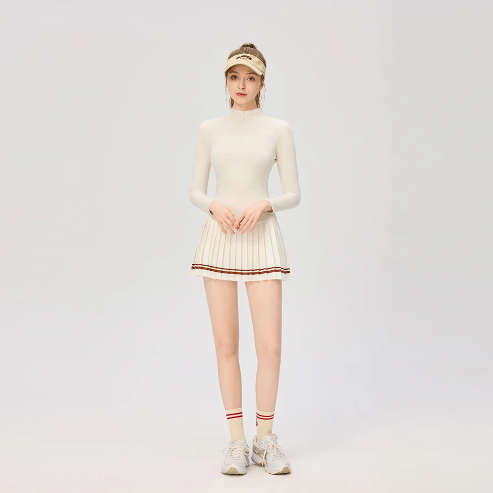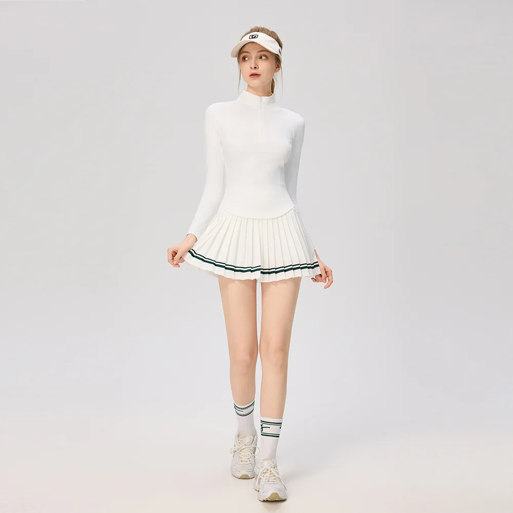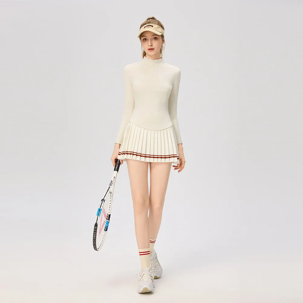 Feature: Zipper Polo Collar, Breathable, Long Sleeve, Slim, Bodycon,Soft, Pleated, A-lined, High Waist, with short, vintage