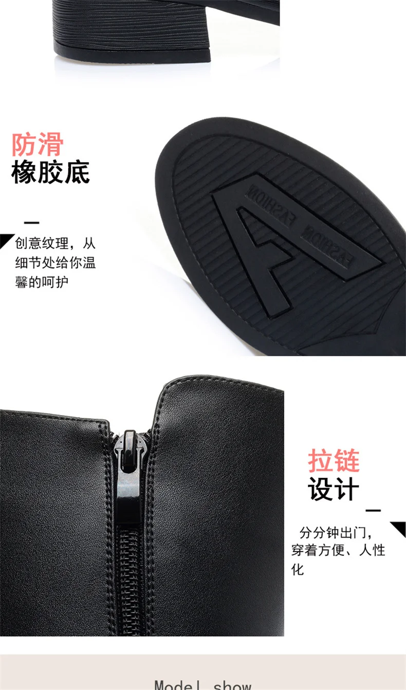 Women's Mid-Calf Casual Warm Boots with Side Zipper Round Toe Medium Heel