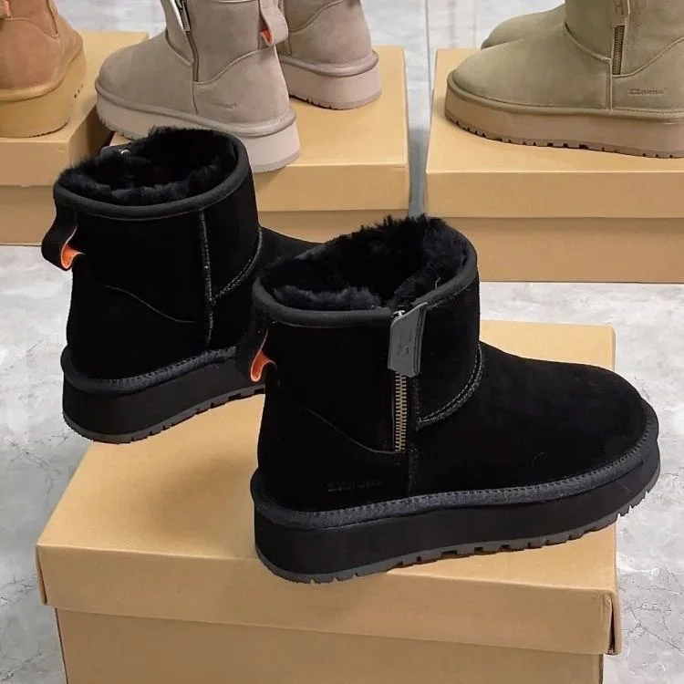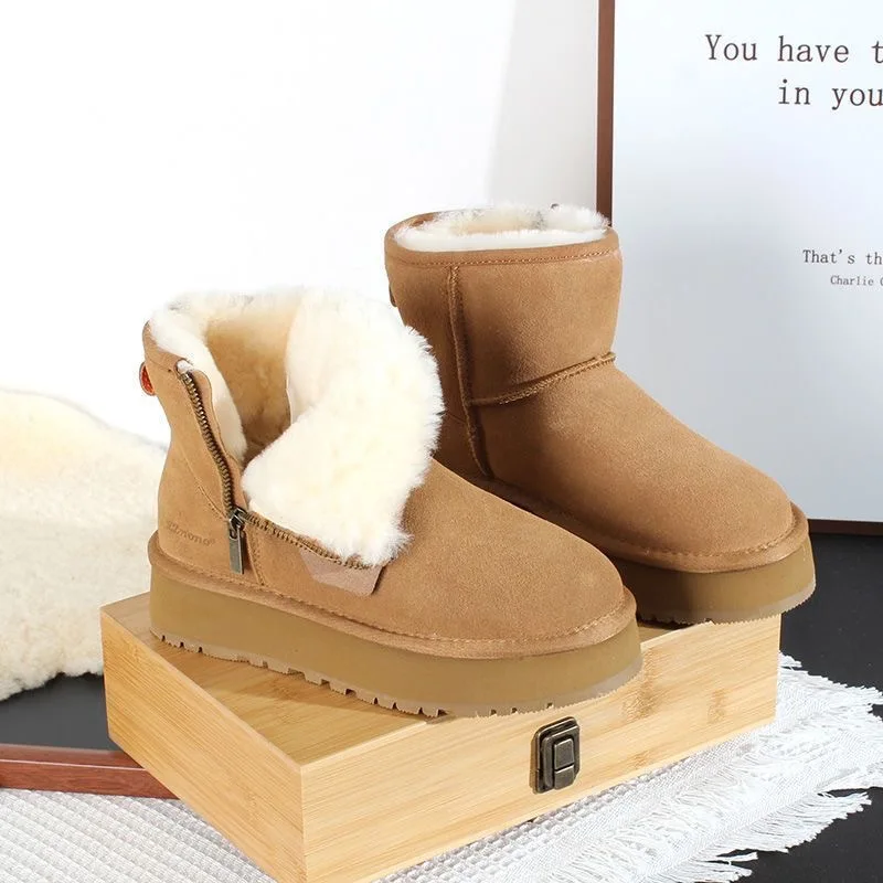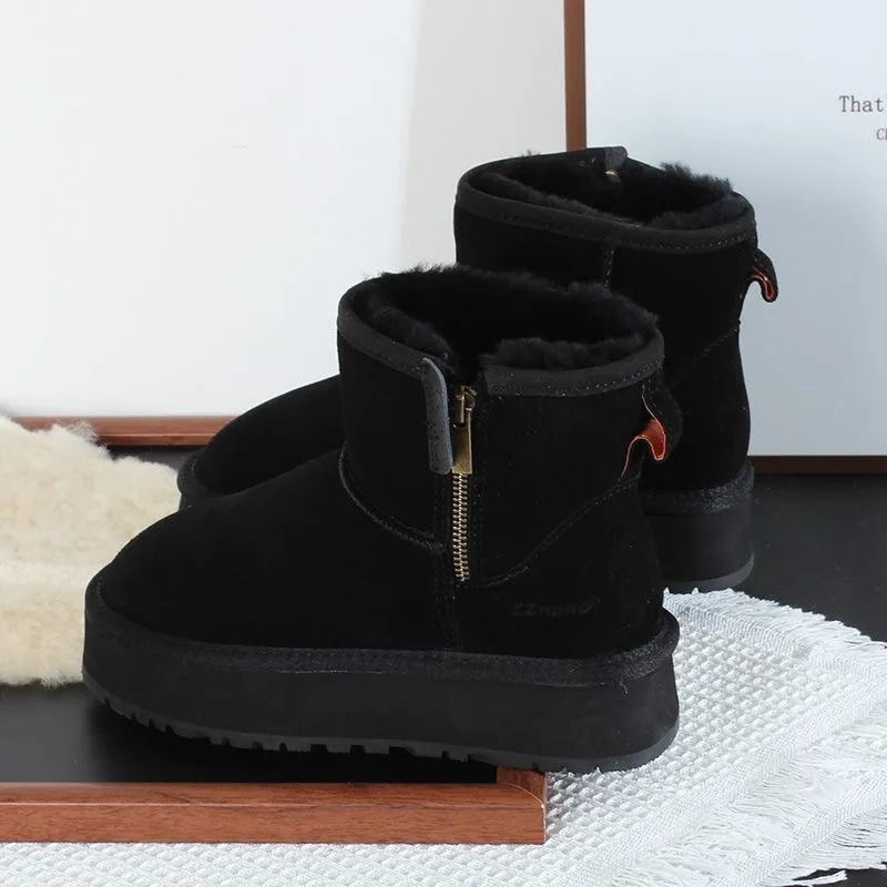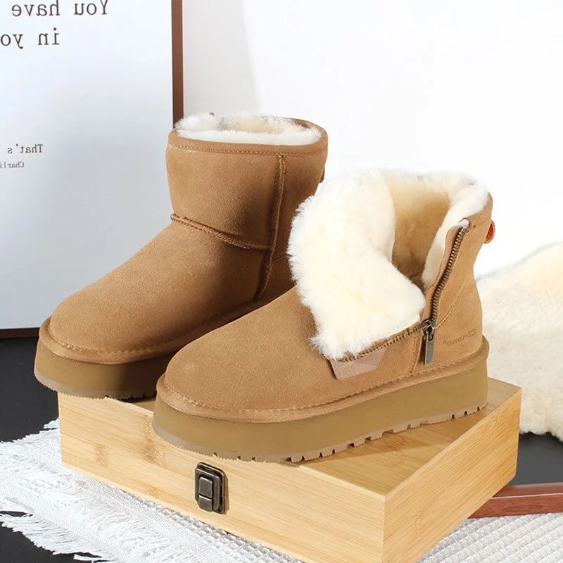 Women's Mid-Calf Snow Boots with Height Increasing Heel and Side Zipper