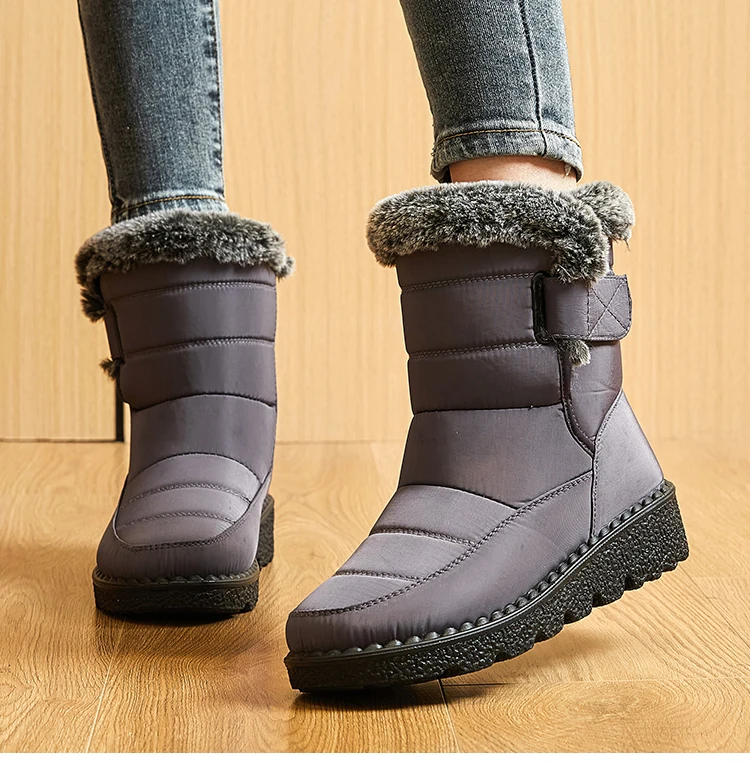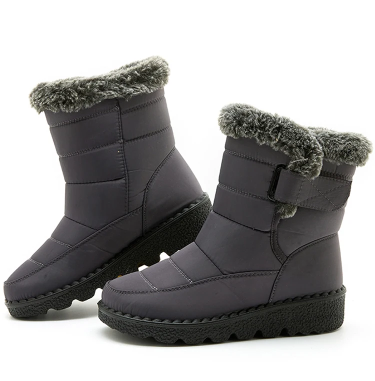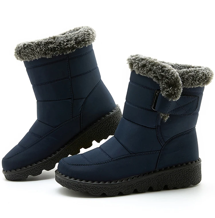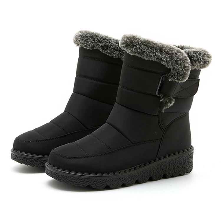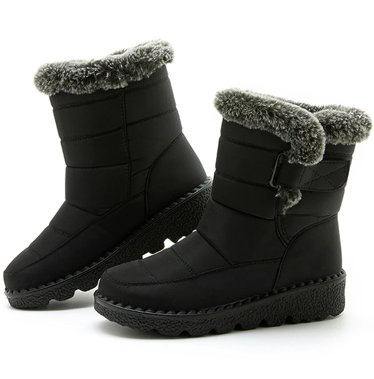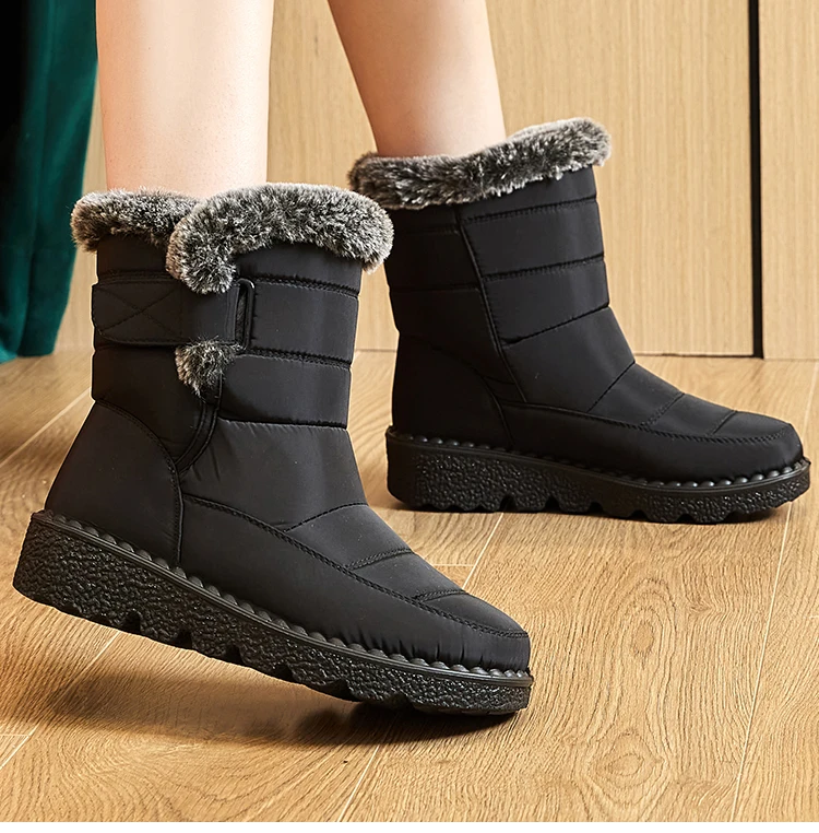 Boots Waterproof Fur Boots For Snow Women's Winter Shoes Low Heels Women Middle Boots Winter Footwear Warm Combat Shoes Woman