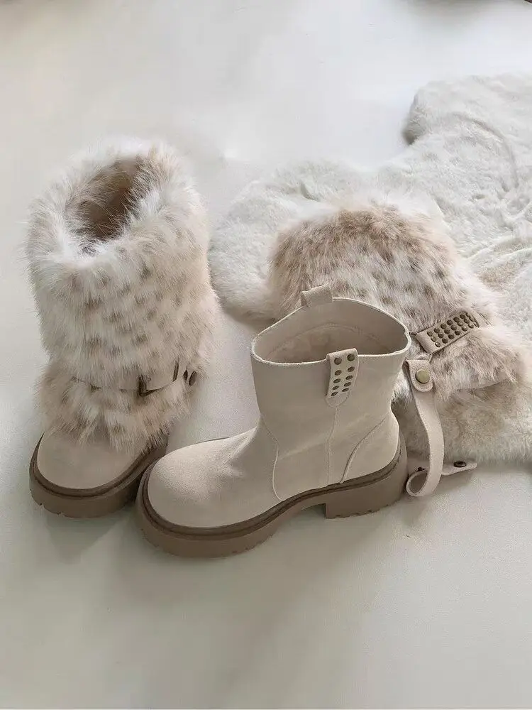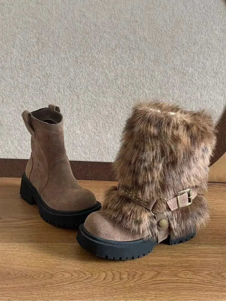 Women's Mid-Calf Snow Boots with Square Heel and Plush Lining