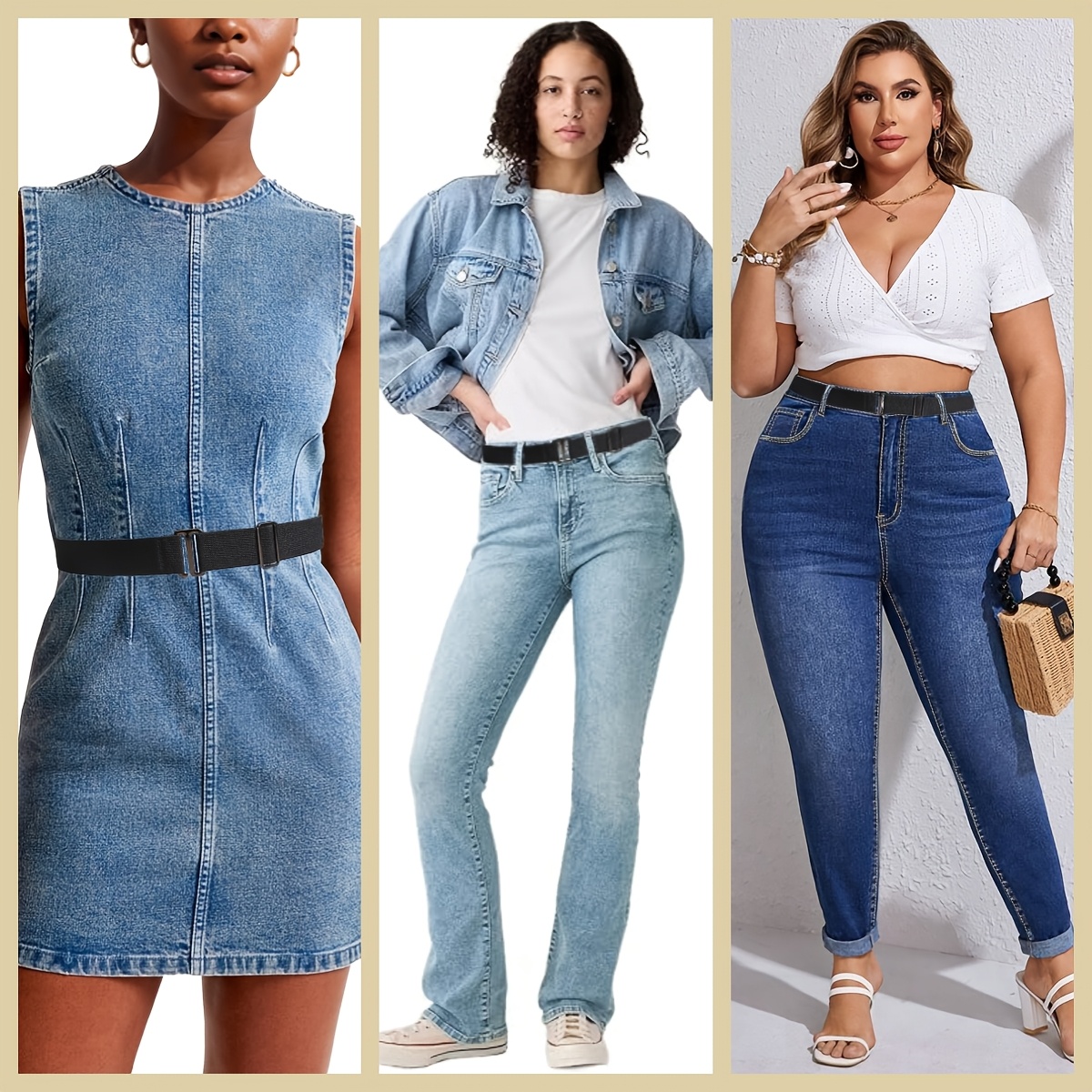Women's Monochrome Elastic Belt with Stainless Steel Buckle for Jeans