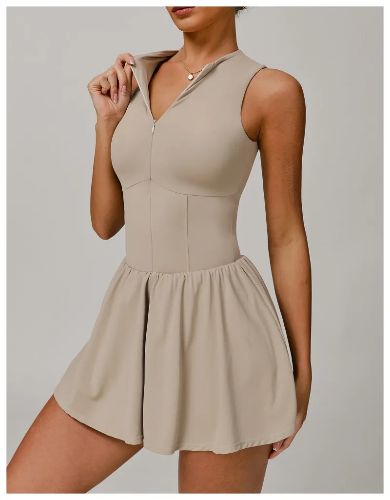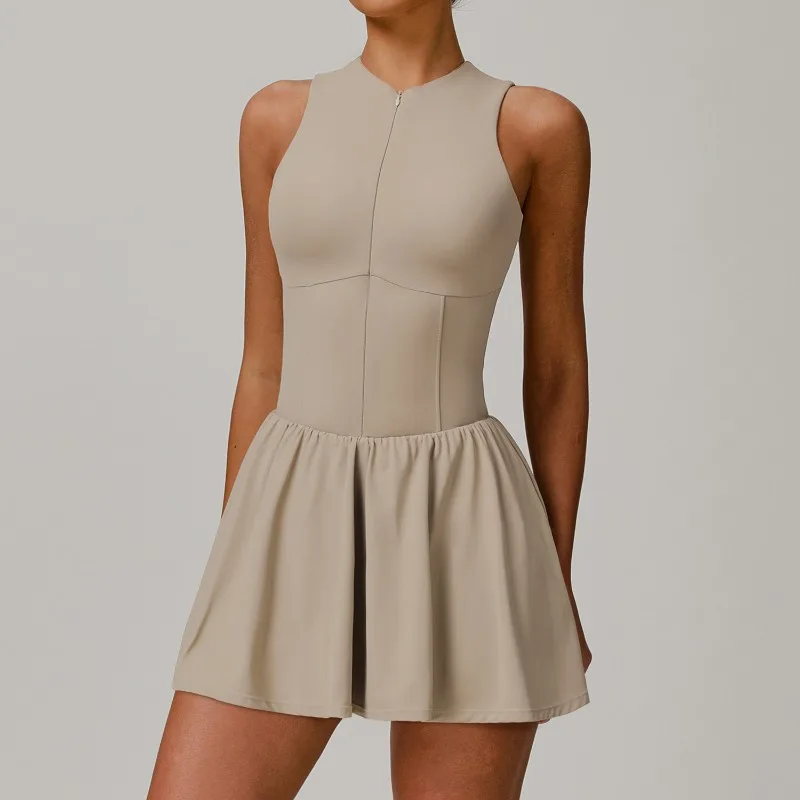 Women's Nylon Knit Fitness Suit with Stand-Up Collar for Yoga