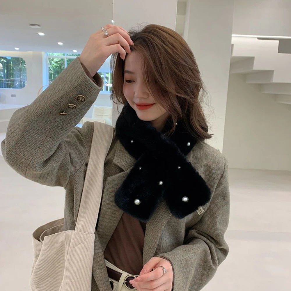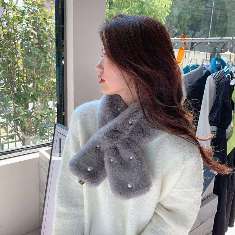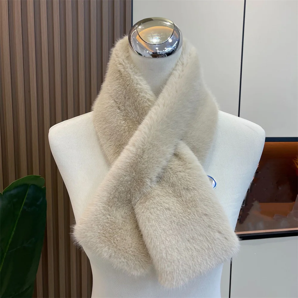 Women's Outdoor Winter Faux Fur Warm Solid Color Scarf