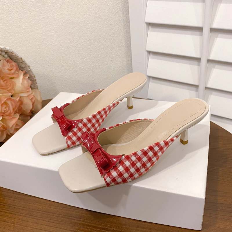Women's Peep Toe Kitten Heel Sandals with Retro Plaid Bow