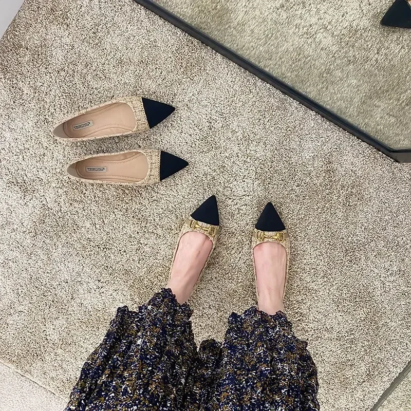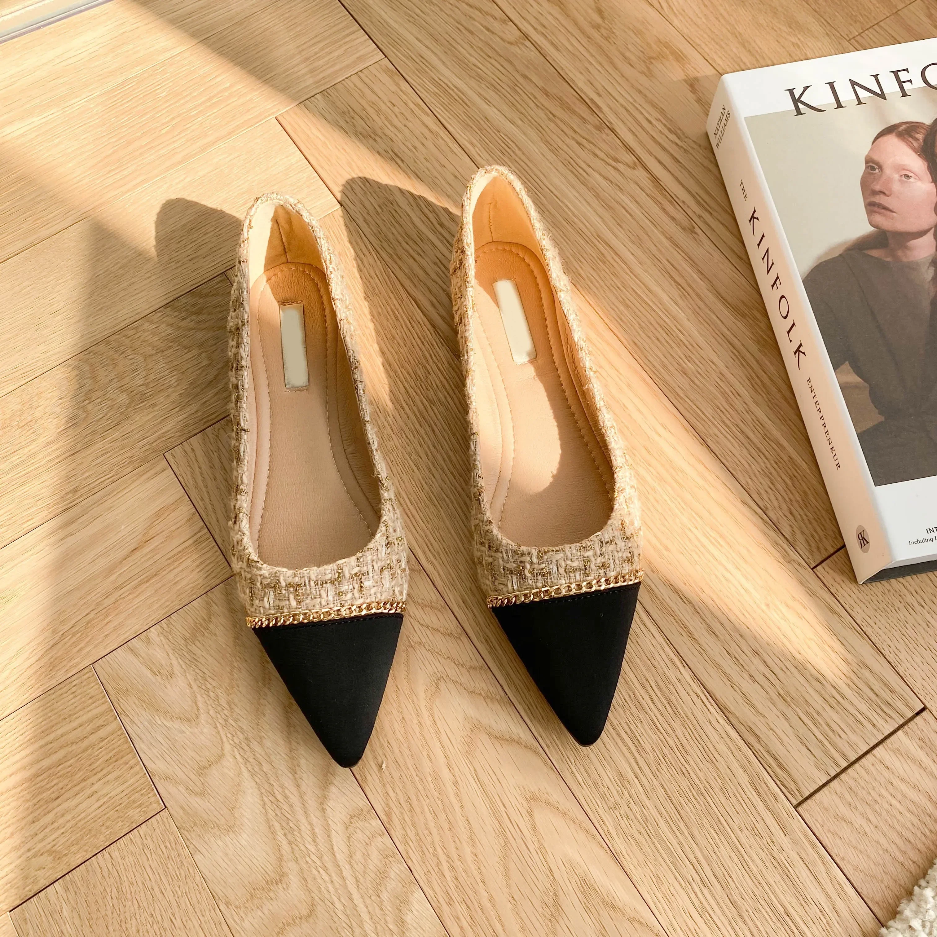Women's Pointed Toe Low-Heeled Slip-On Flats with Metal Decoration