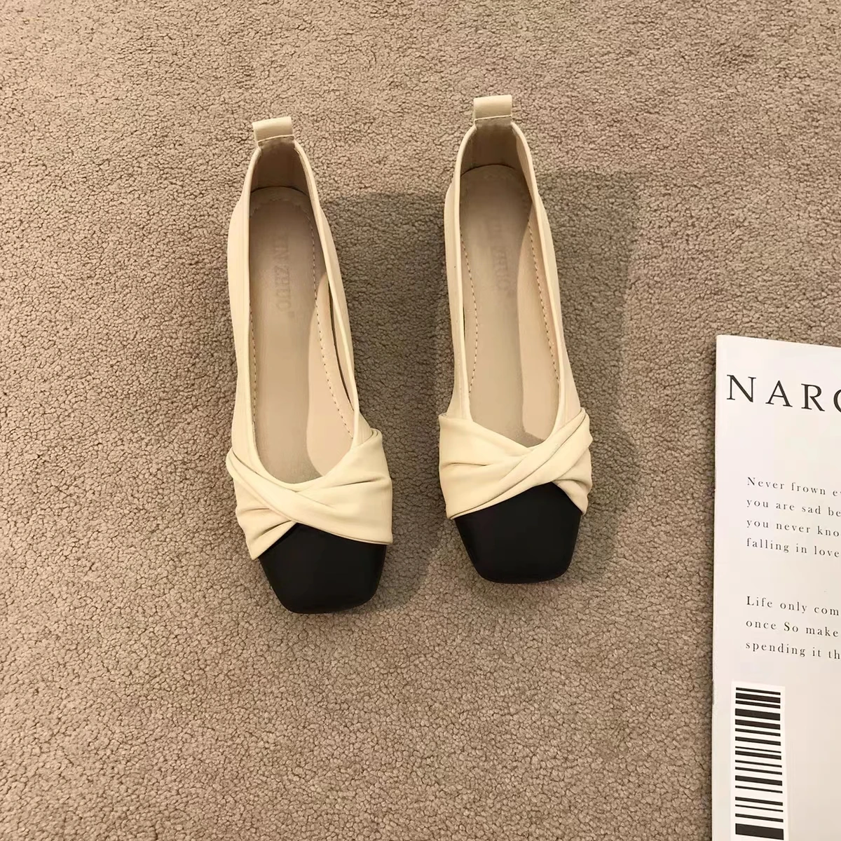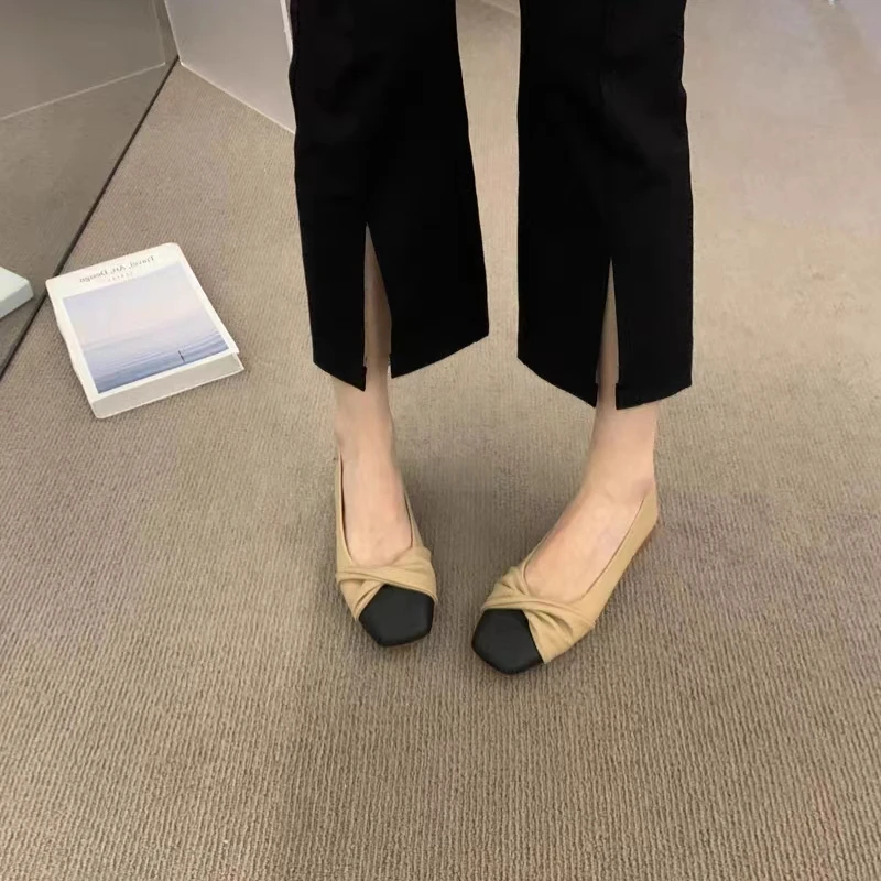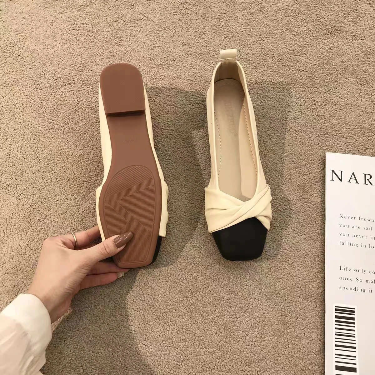 Women's Round Bow Color Blocked Slip-On Ballet Flats