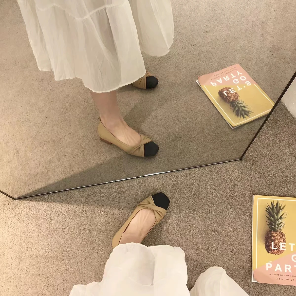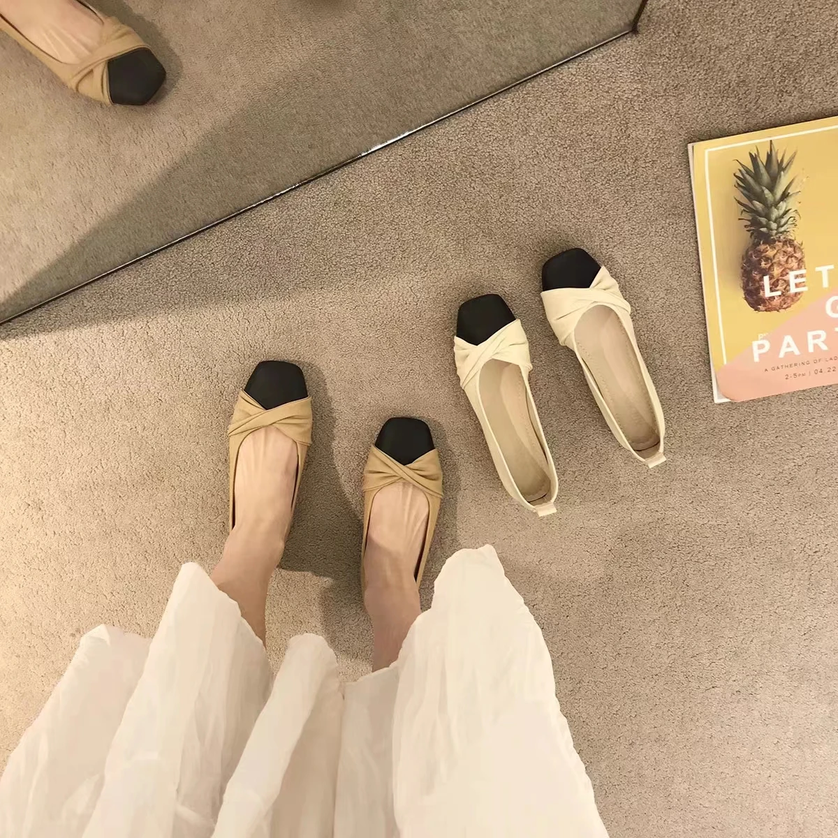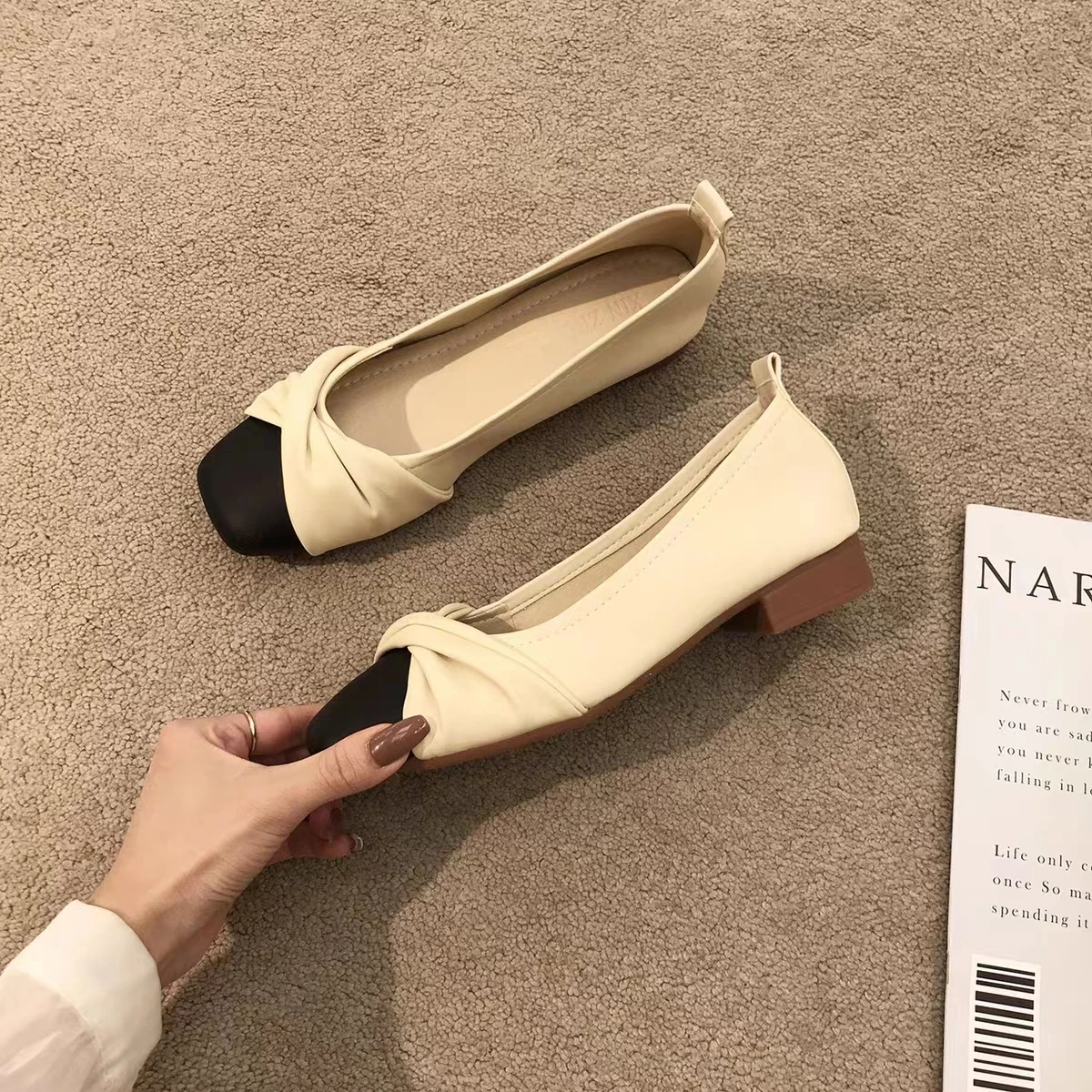 Women's Round Bow Color Blocked Slip-On Ballet Flats