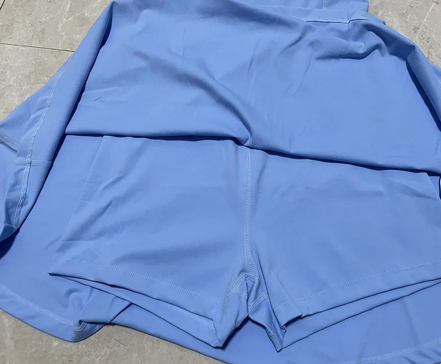 Hi, friend, This dress with chest pads, fabric is 80% Nylon and 20% Spandex, it's very soft, and shorts built in dress, it's very good for fitness. there are some real pics I took, please check them.