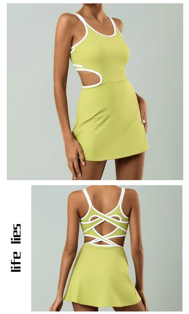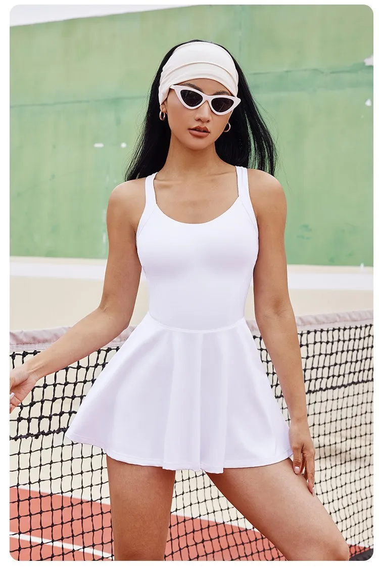 Women's Slim Fit Sleeveless Tennis Dress in Nylon Elastane with Chest Pads