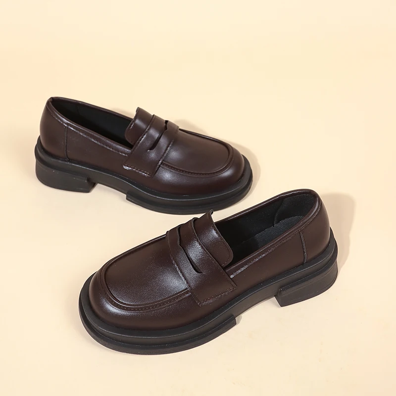 Women's Slip-On Lolita Platform Shoes, Low Heel, Black/Coffee