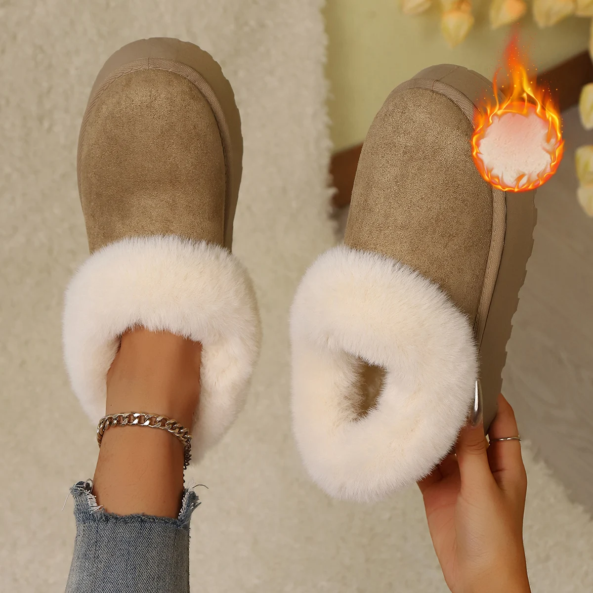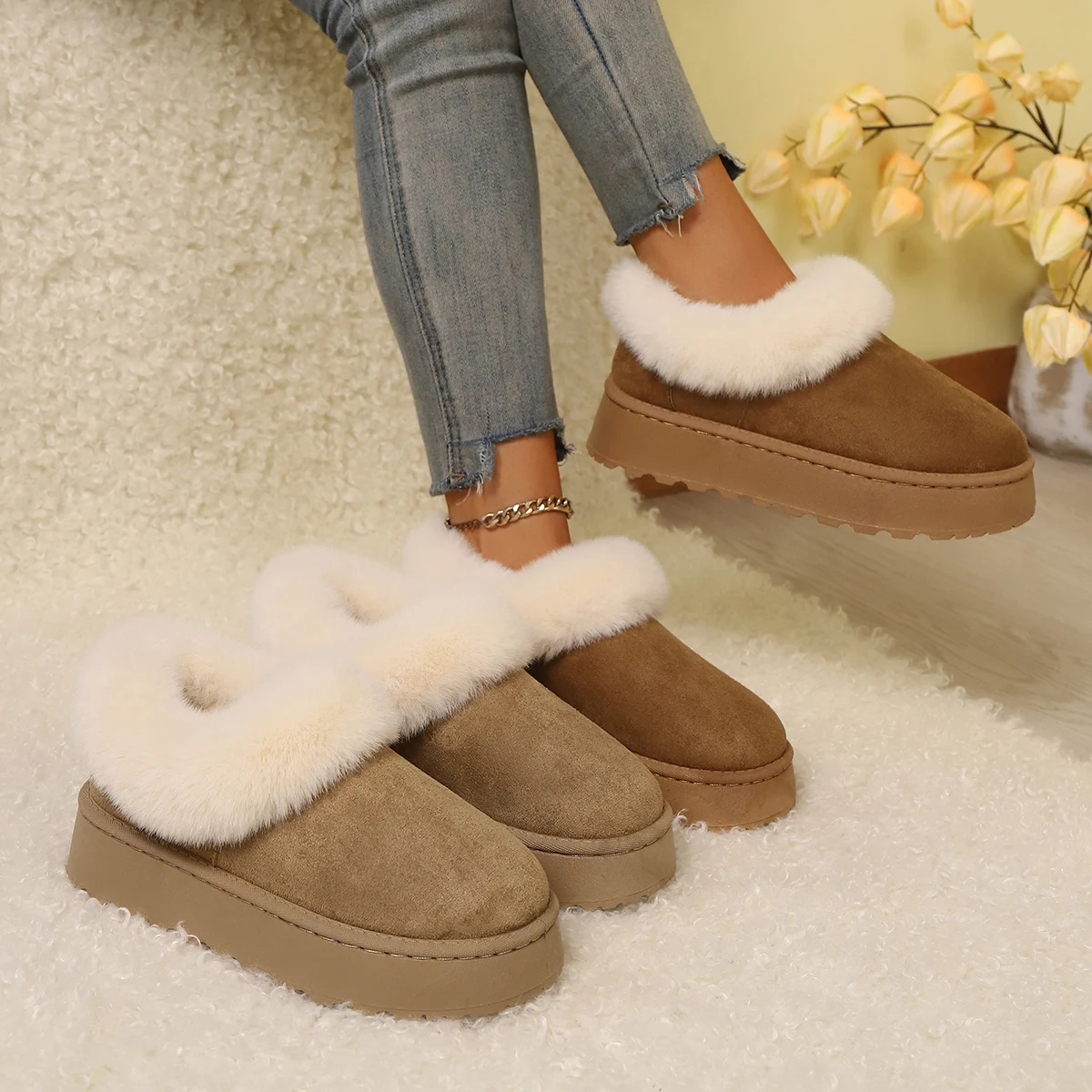 Women's Solid Color Ankle Snow Boots with Felt Lining