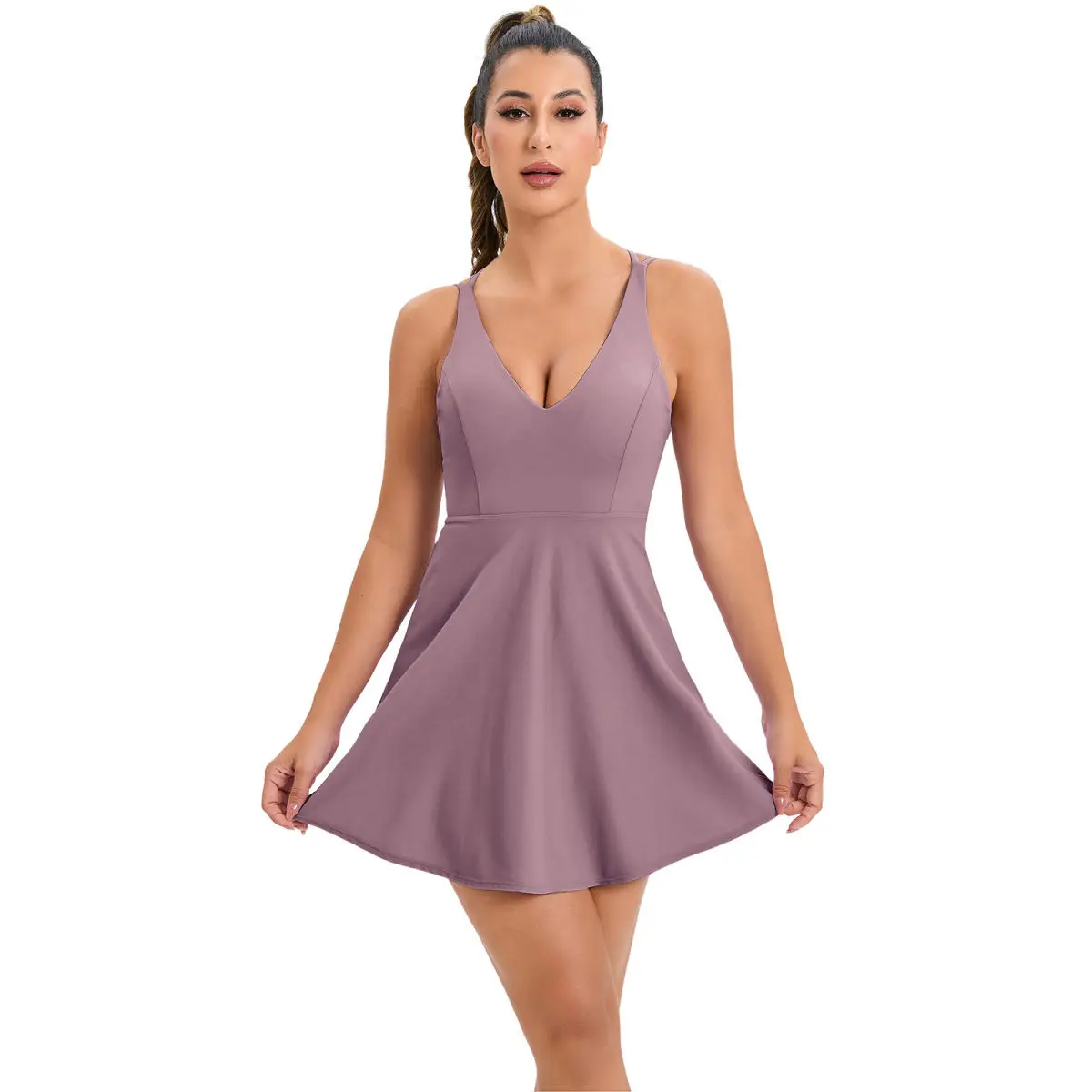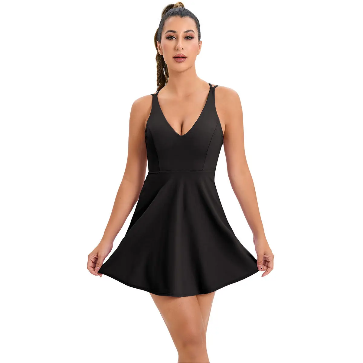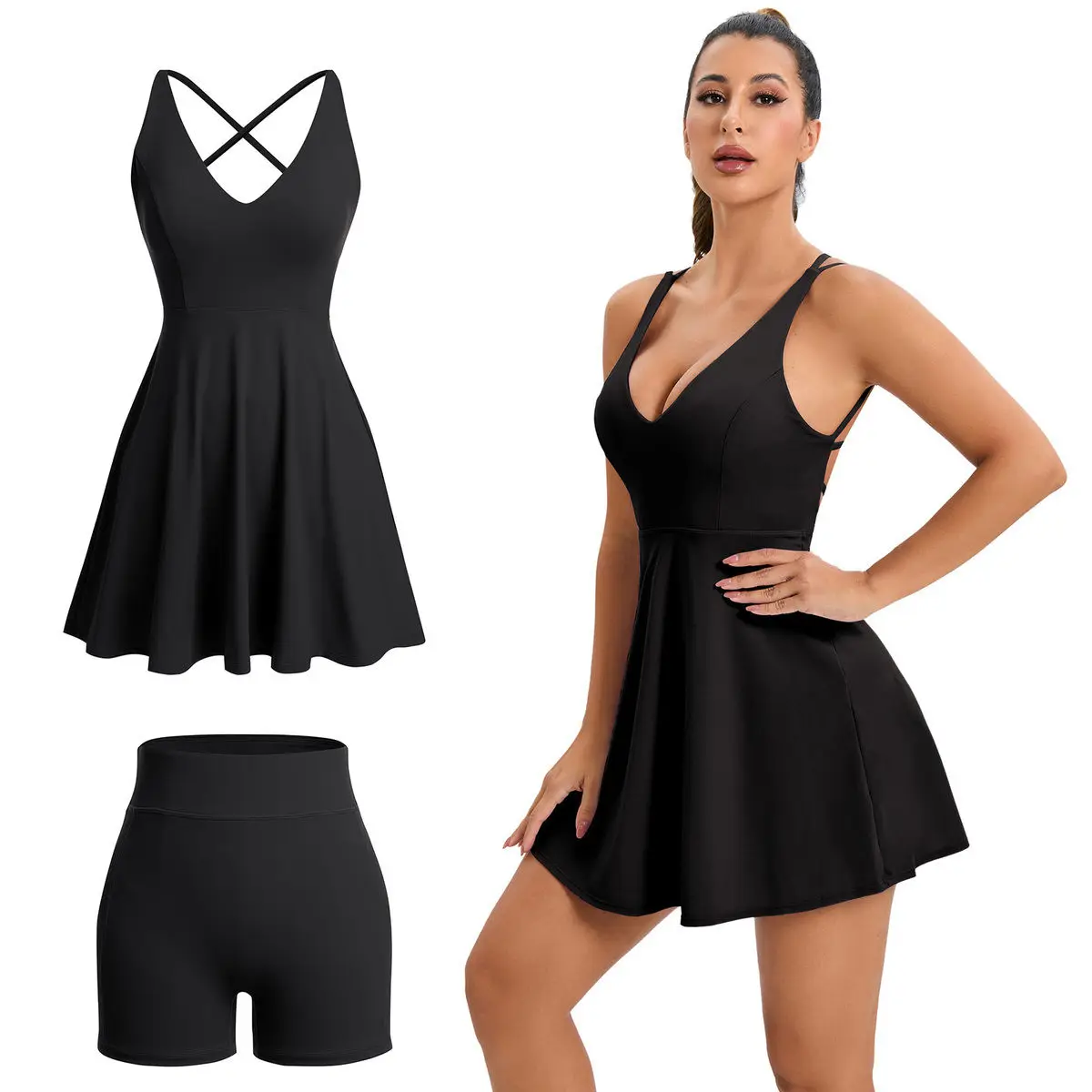 Women's summer tennis skirt built-in shorts and bra sleeveless backless workout sports golf dress tennis dress for fitness