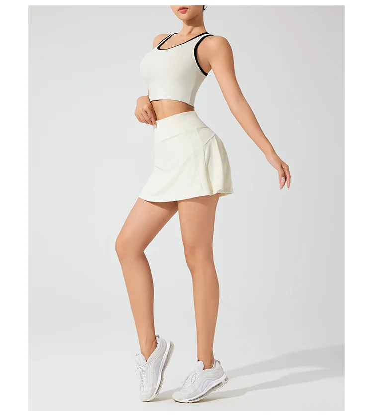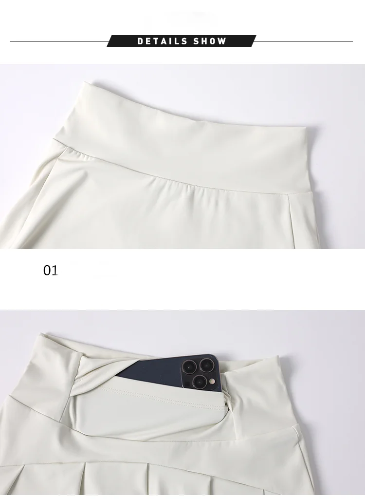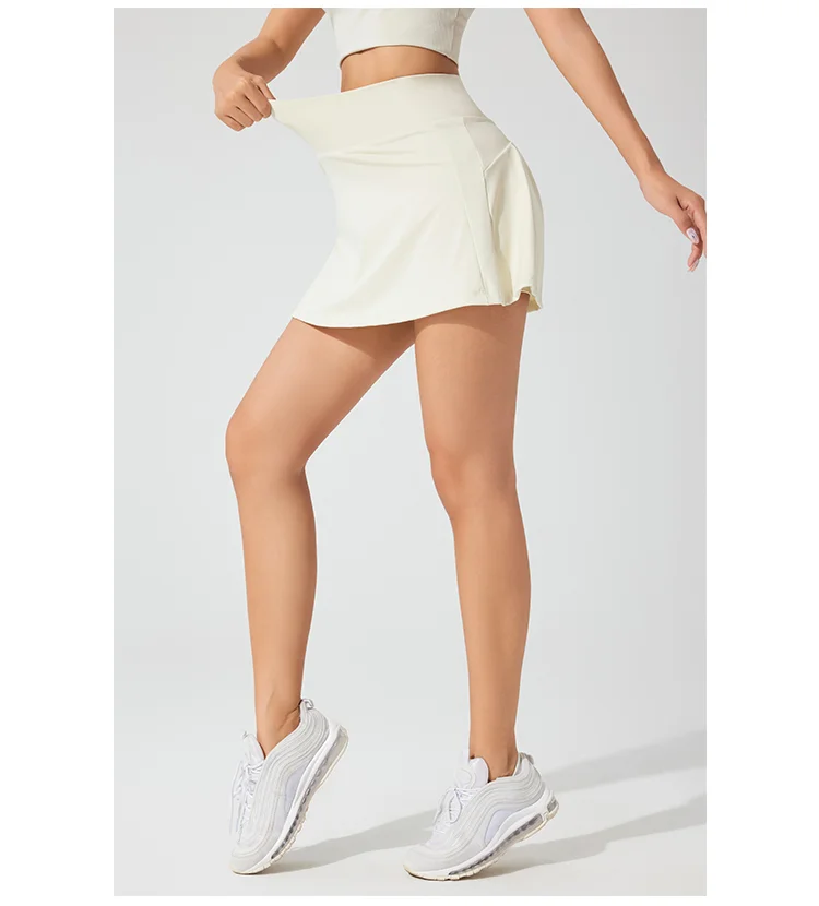 Women's White Solid Nylon Elastane Tennis Skort with Side Pocket and Shorts